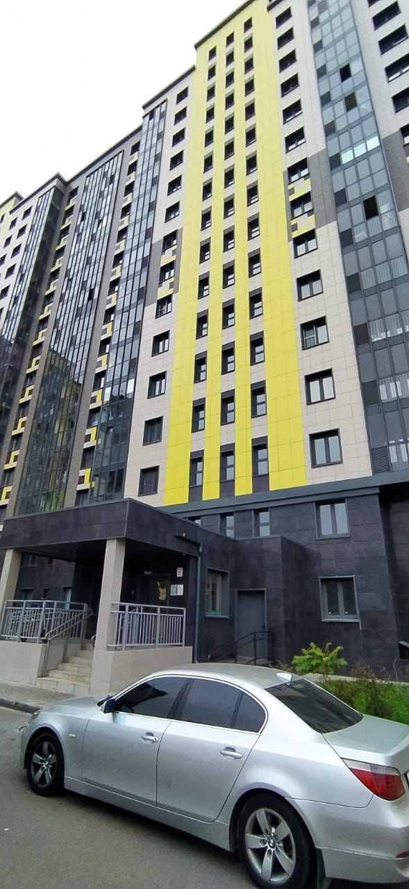 Помещение Г - образной формы. Совмещённый санузел , панорамный балкон. 2 лифта в подъезде