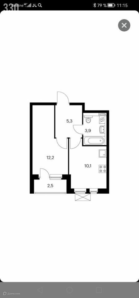Жилая площадь 12.2 м2