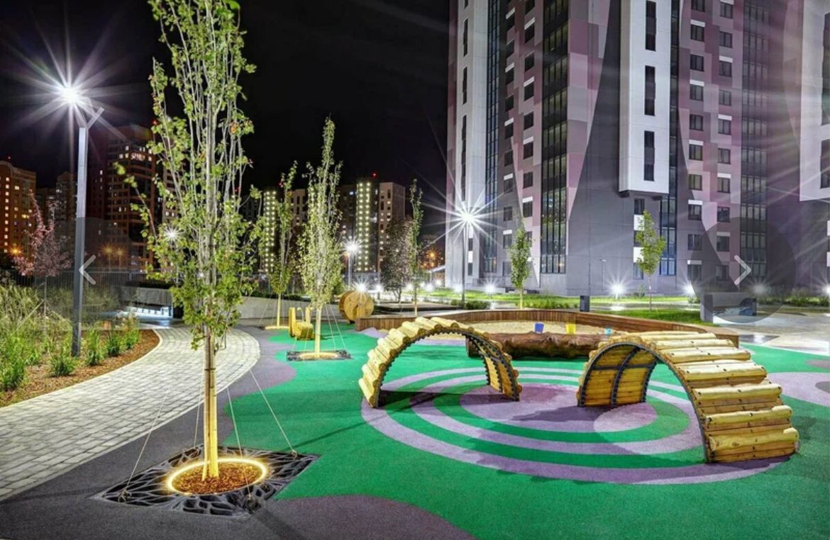 Окна выходят на лес и двор с дендропарком.  Закрытая, охраняемая парковка, гостевая парковка, в пешей доступности многоуровневая парковка, колясочная Жилой комплекс с дендропарком, скейт парком, шикарной детской площадкой, фонтаном, беседками. В шаговой доступности школа №18, детский сад, больница и магазины.