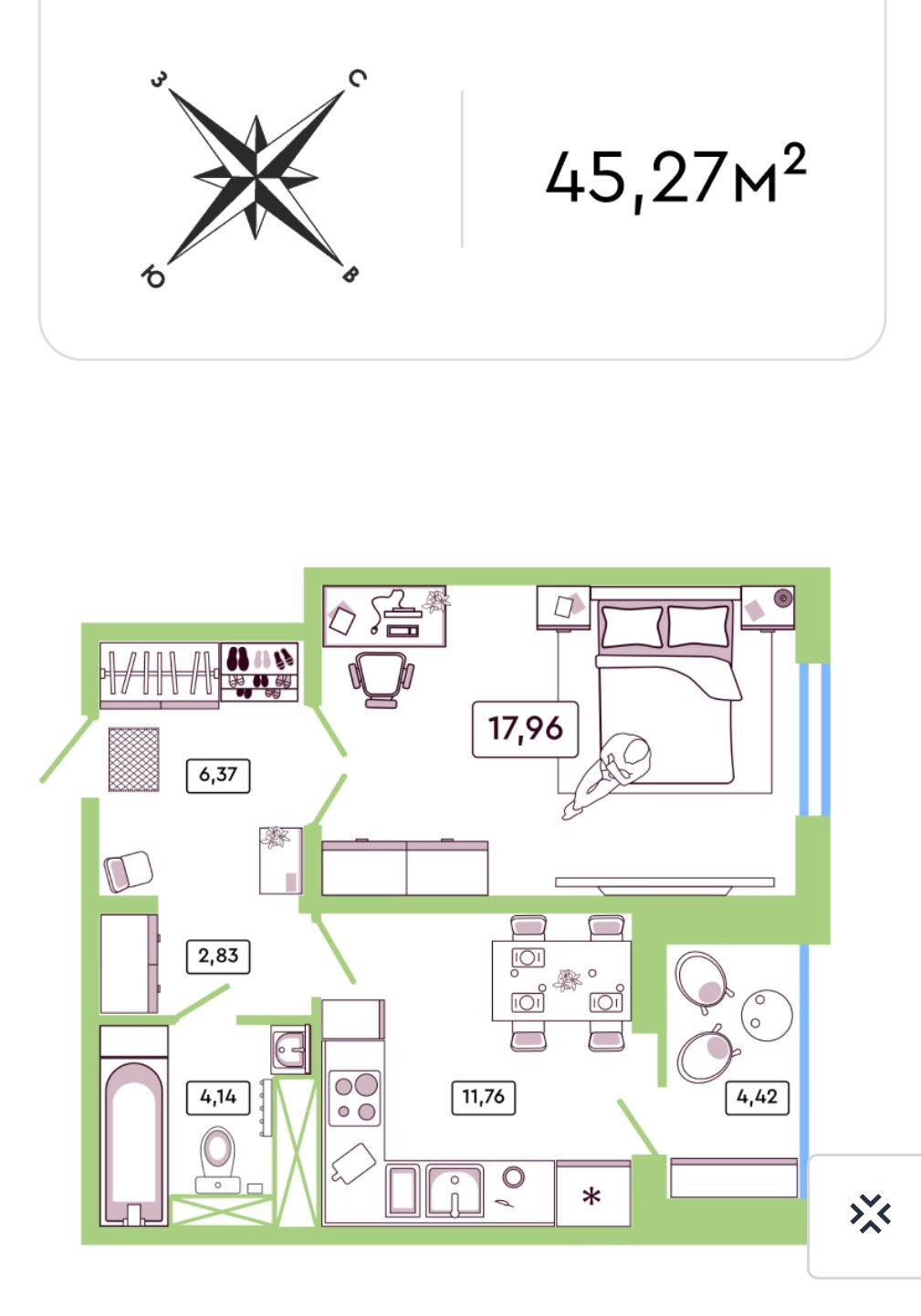 Общая площадь 45 м2