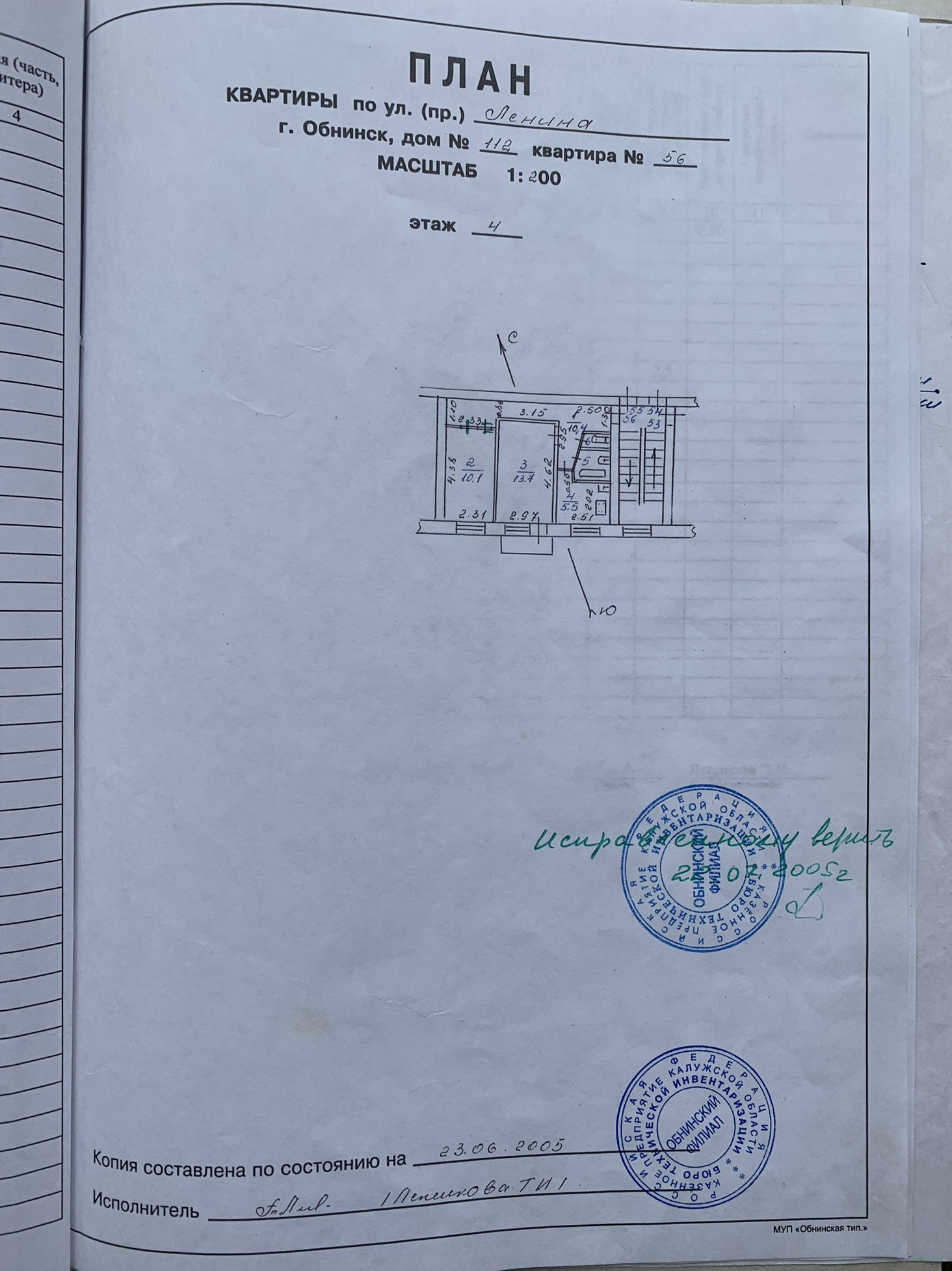 Перепланировка узаконена (изменён вход в дальнюю комнату).