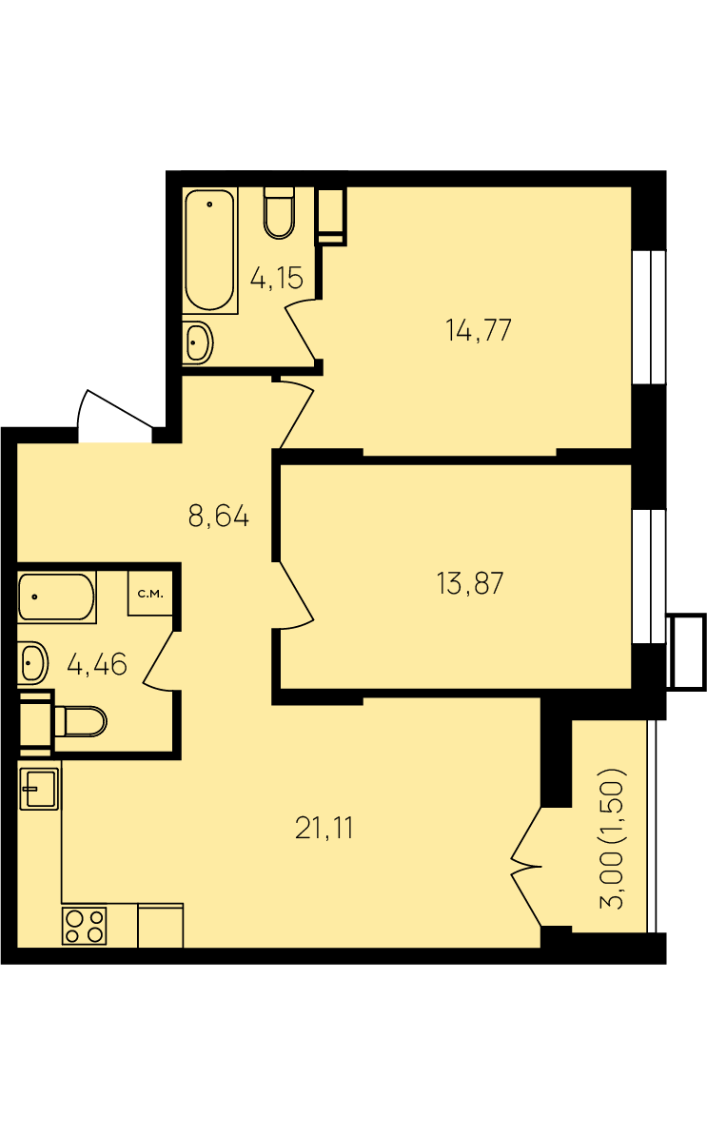 Площадь кухни 21.1 м2