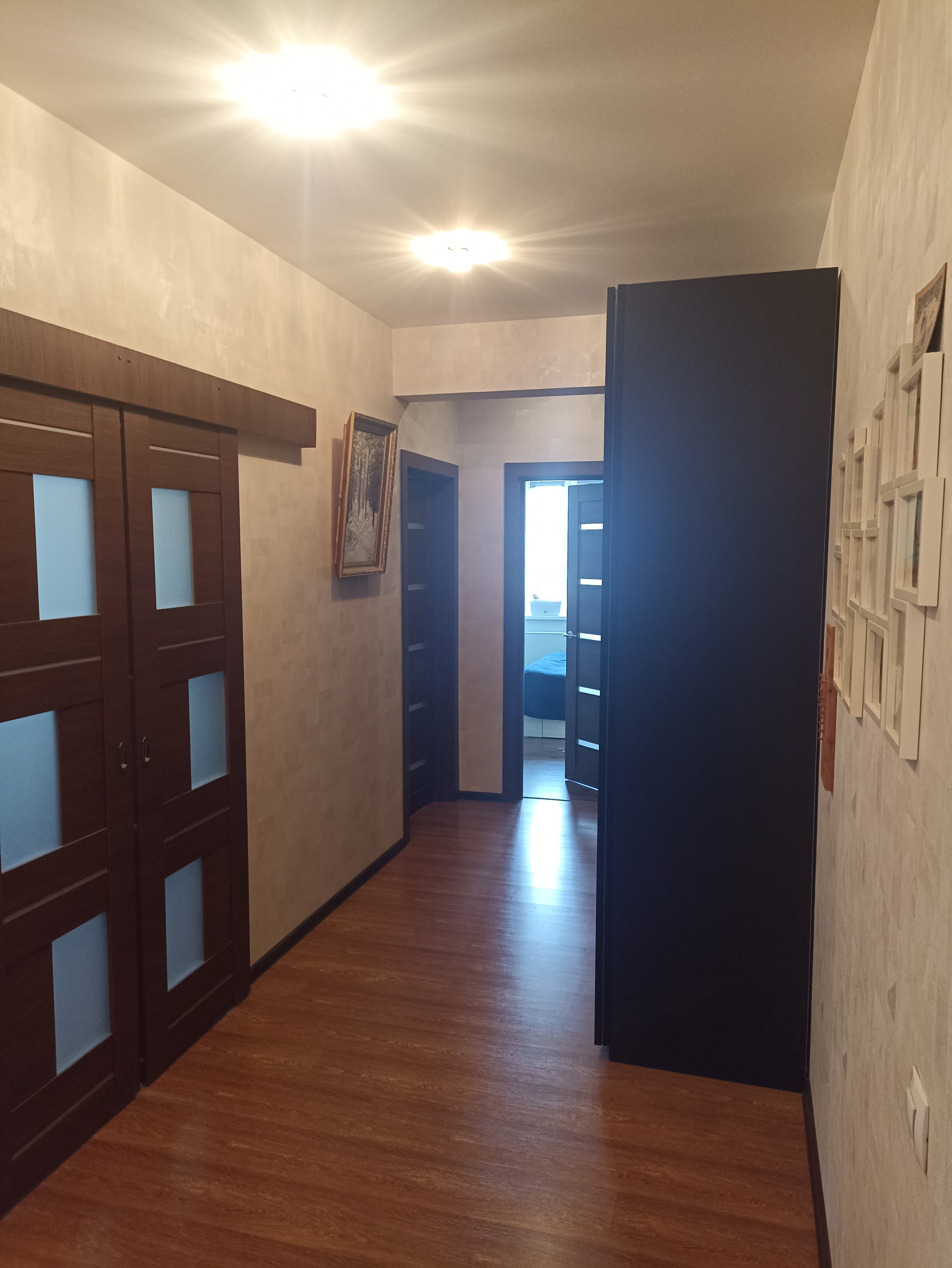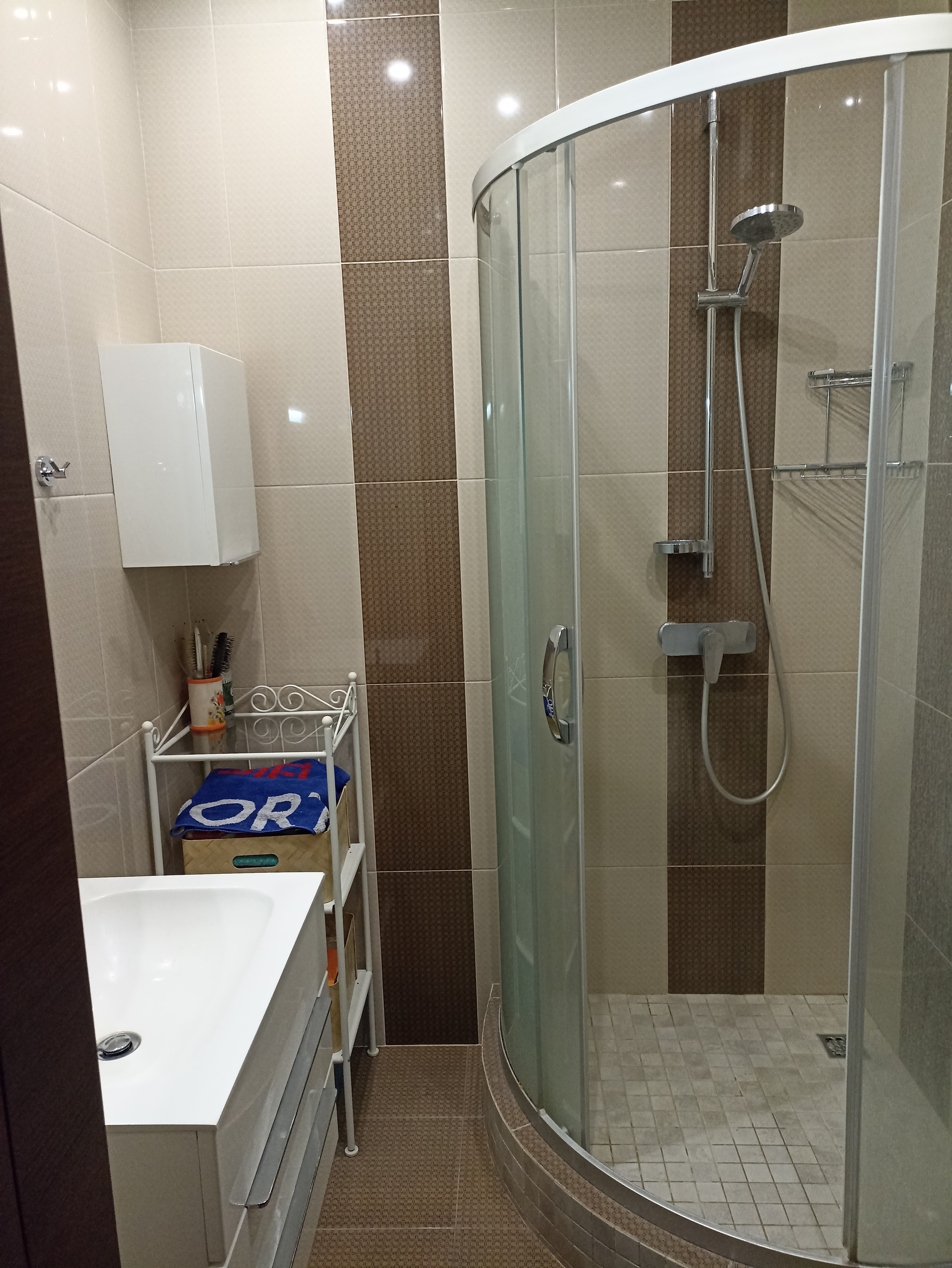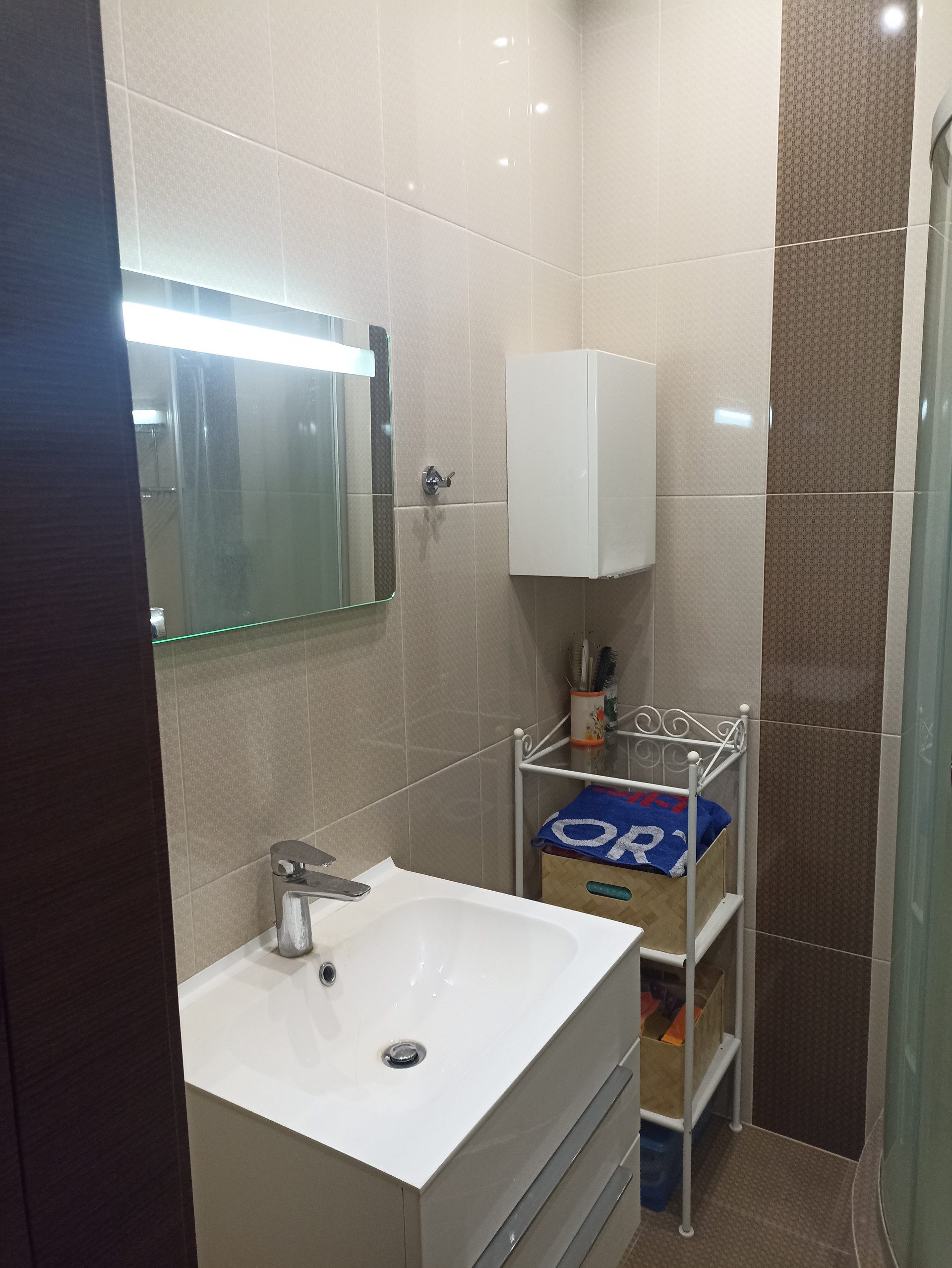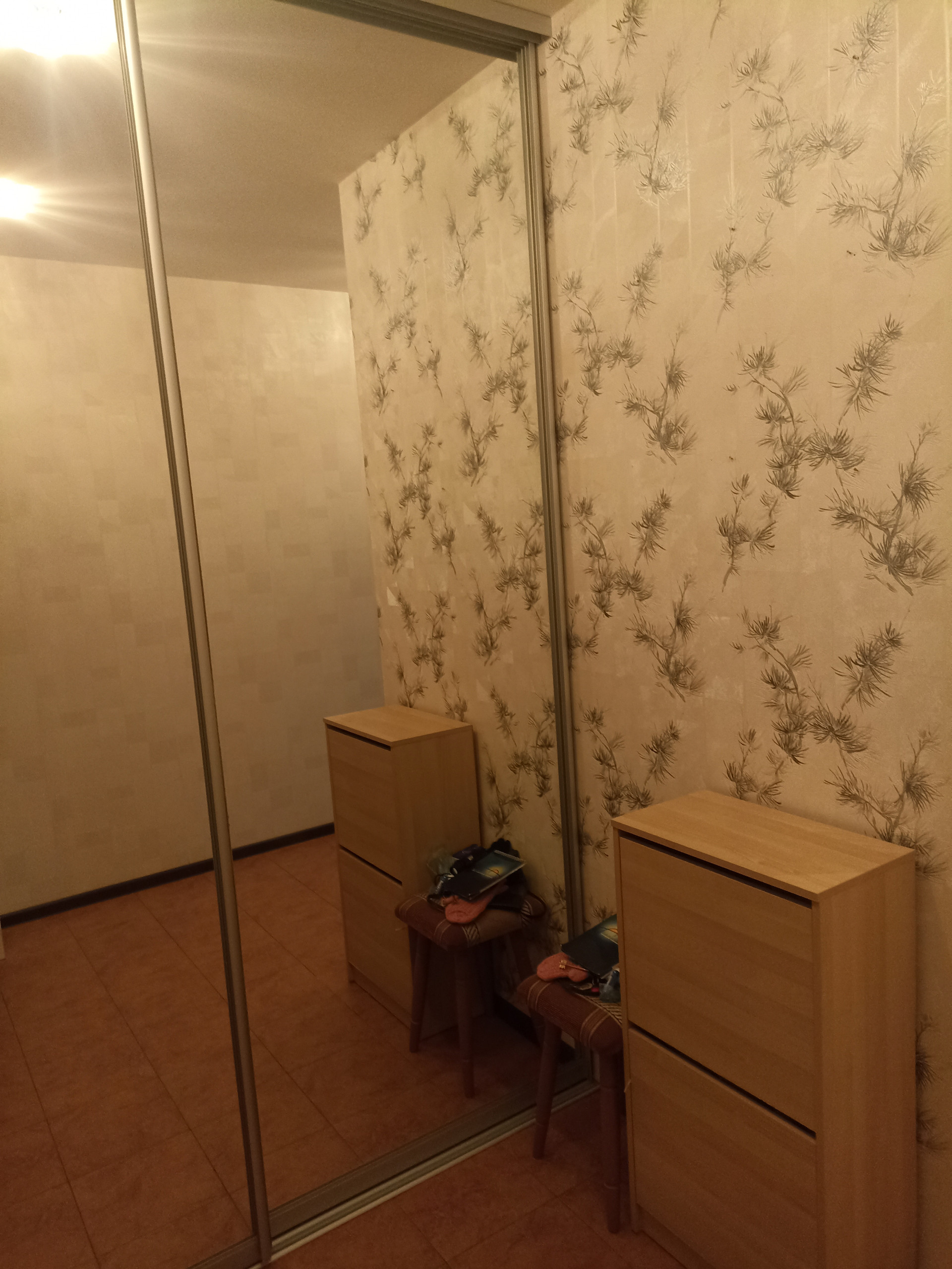 Раздельный санузел с душевой кабиной. В прихожей встроен глубокий шкаф-купе.