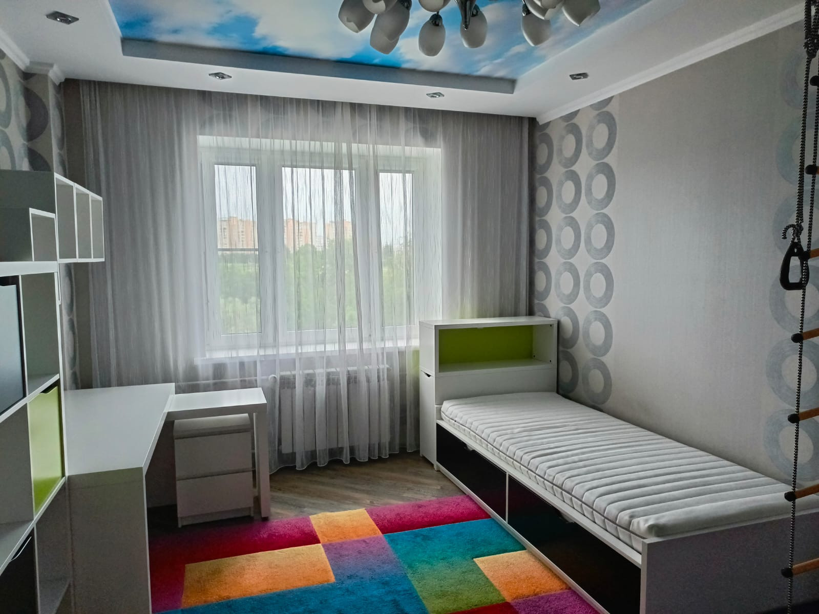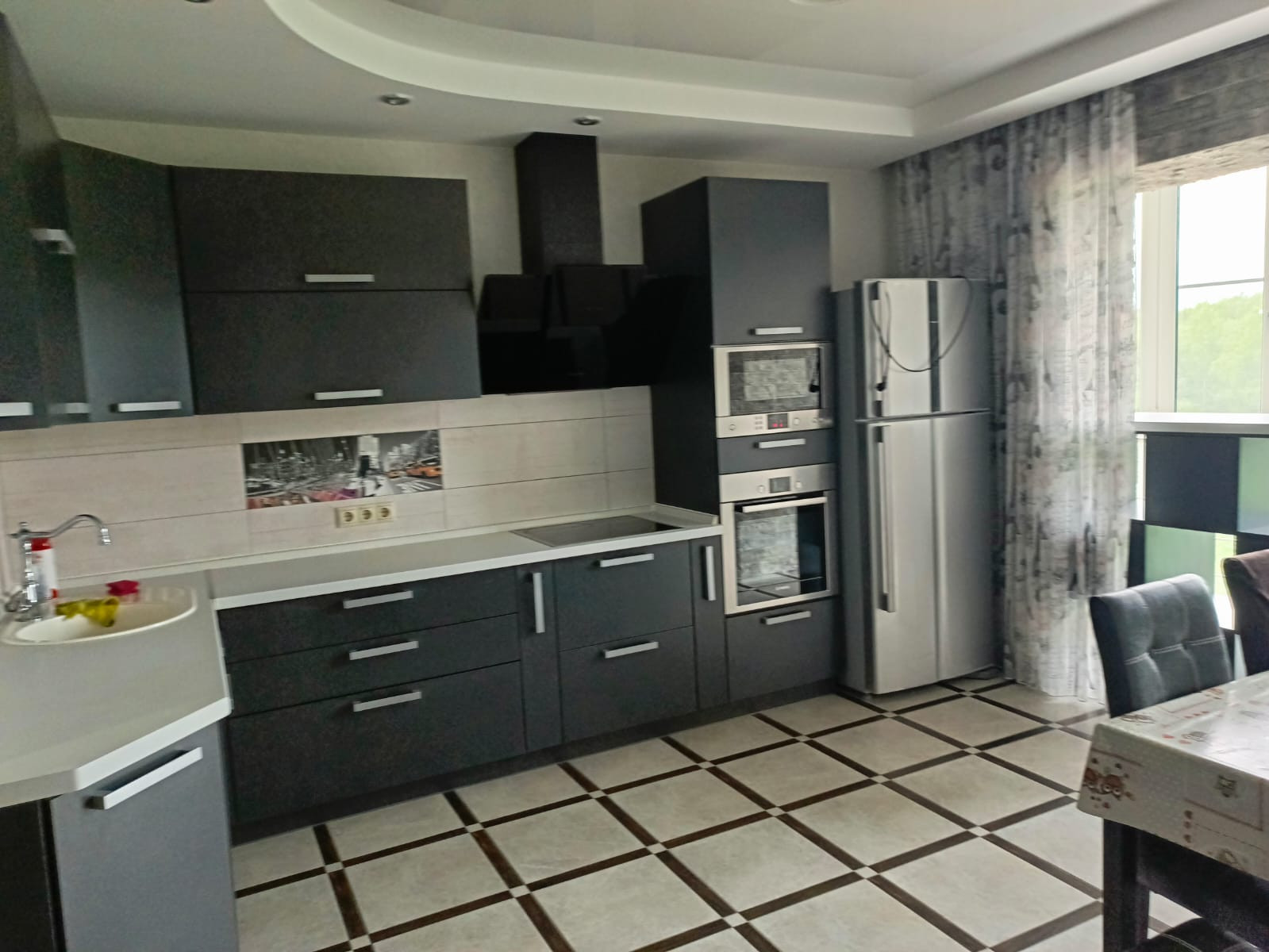 Продаётся трёхкомнатная квартира в Зелёном острове Обнинска, ул. Усачёва 17 общей площадью 90.6 м2 с дизайнерским ремонтом. Все комнаты изолированные, санузел и ванна раздельные. Лоджия с напольным подогревом, просторная, застеклённая с прекрасным панорамным видом на лес и ЖК Циолковский. Вход на лоджию с кухни площадью 14.3 м2. Вся мебель, встроенная техника (стиральная машина, духовой шкаф, микроволновка, вытяжка), холодильник в квартире остаются. Вместительная гардеробная со встроенными шкафами, очень удобными в пользовании.