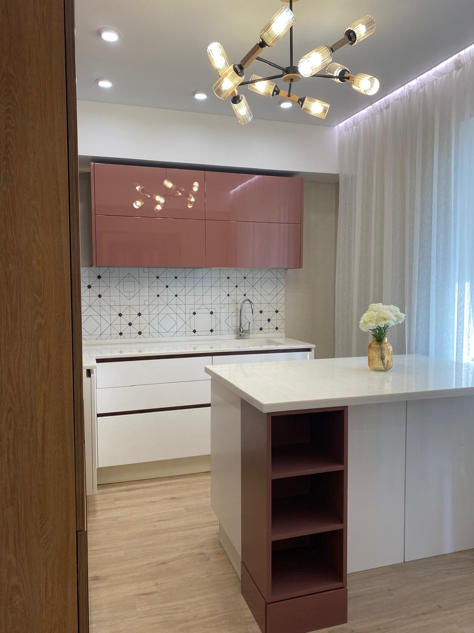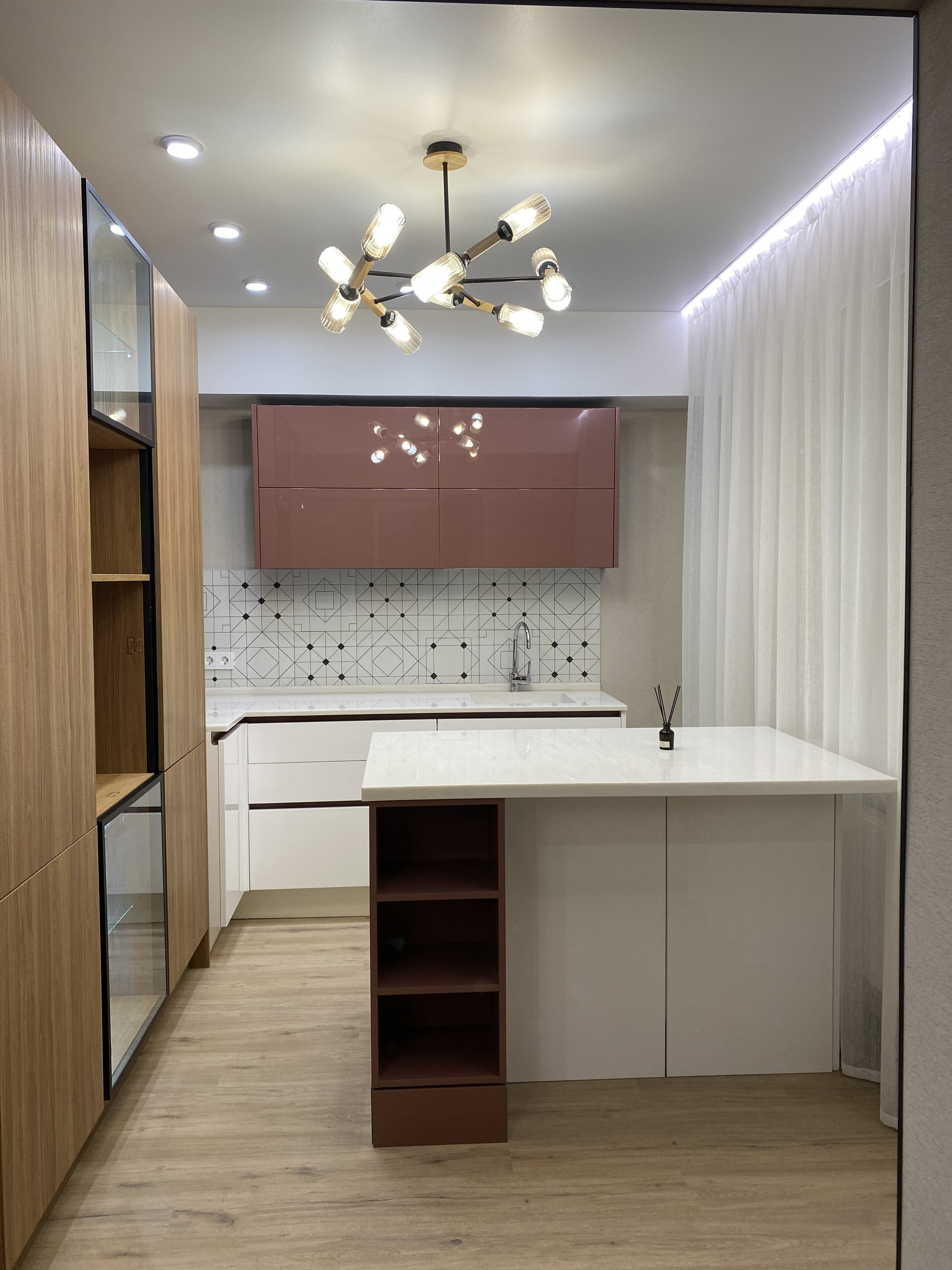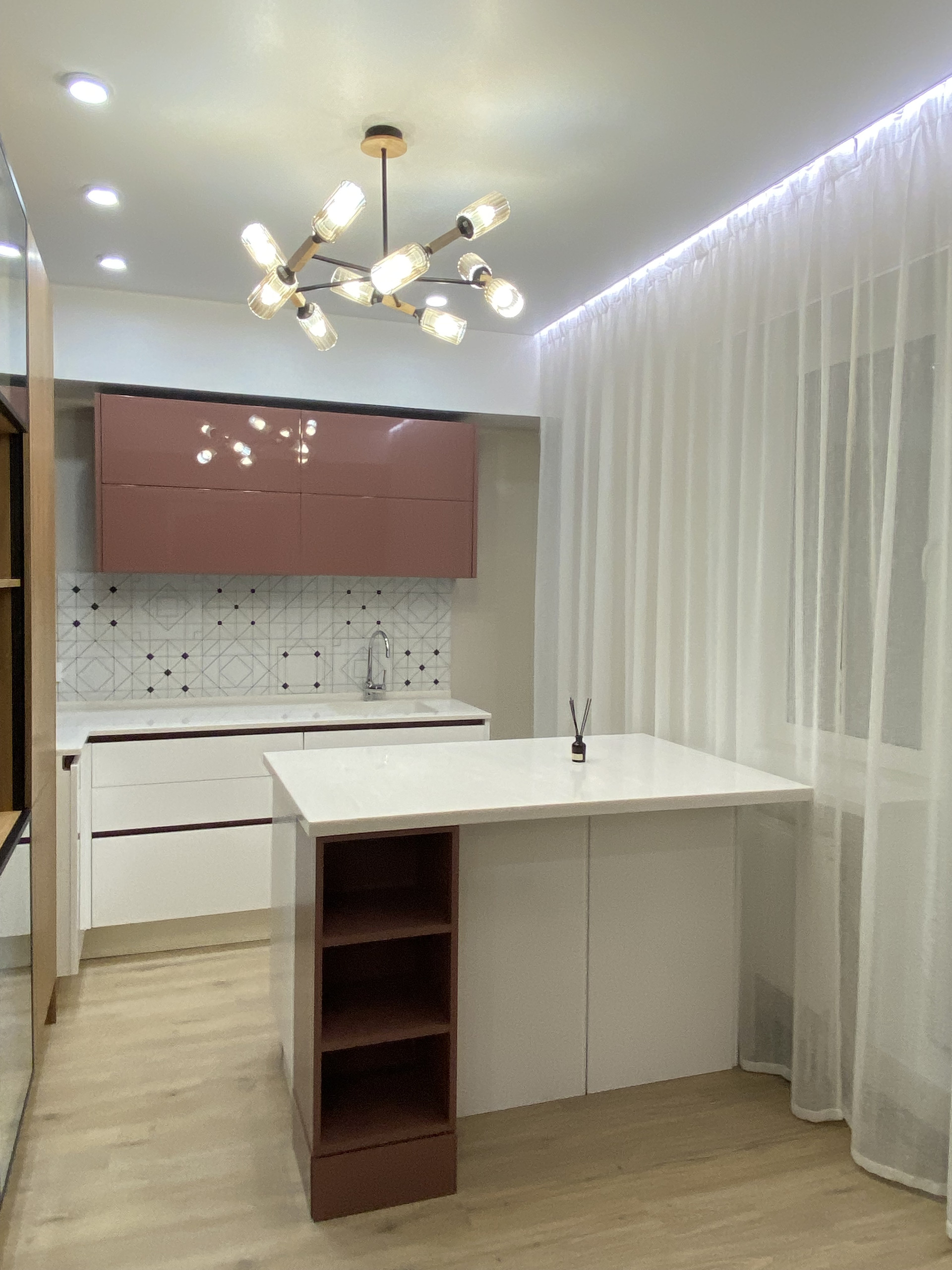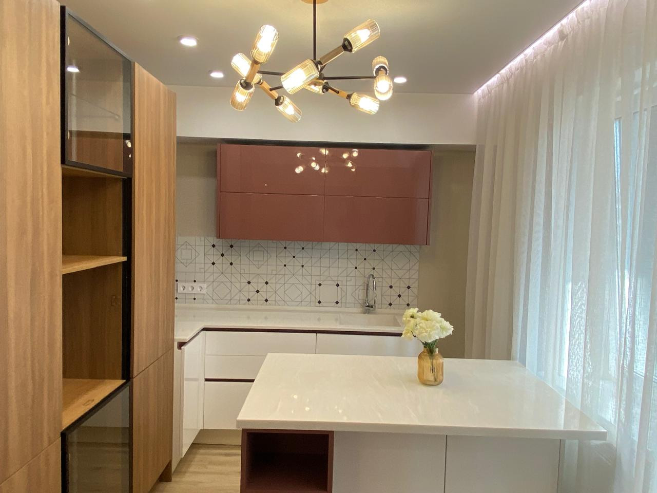 В квартире установлен дорогостоящий кухонный гарнитур, с каменной столешницей, кухня с дорогими фасадами и blum фурнитурой. Отдельно стоящий остров, очень функциональный и с дополнительными местами хранения. В прихожей будет устанавлен комод-обувница. Что будет входить в цену!
