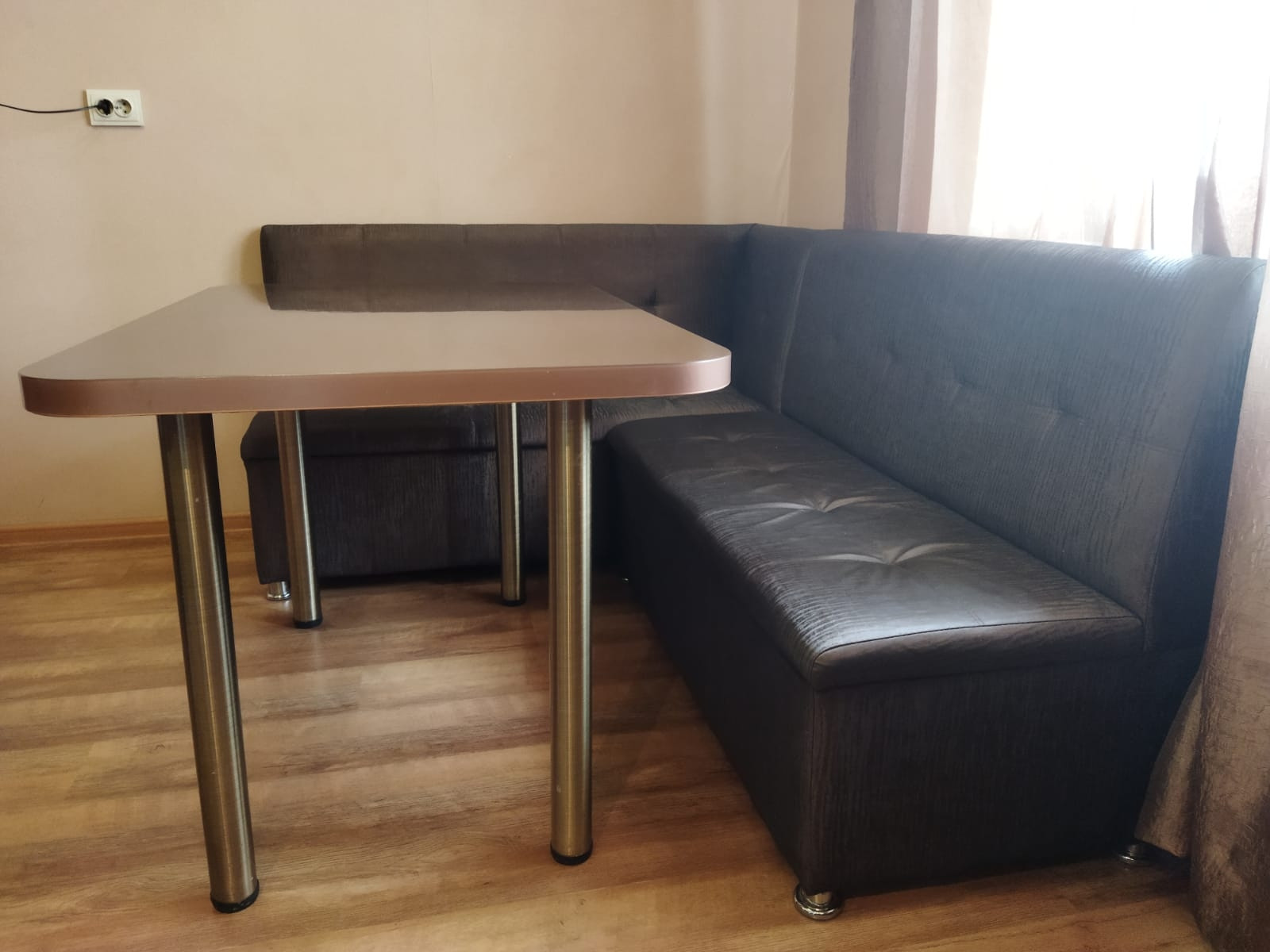 в спальне-гостиной остается угловой раскладывающийся диван с ящиком для белья Рushе и тумба под телевизор;