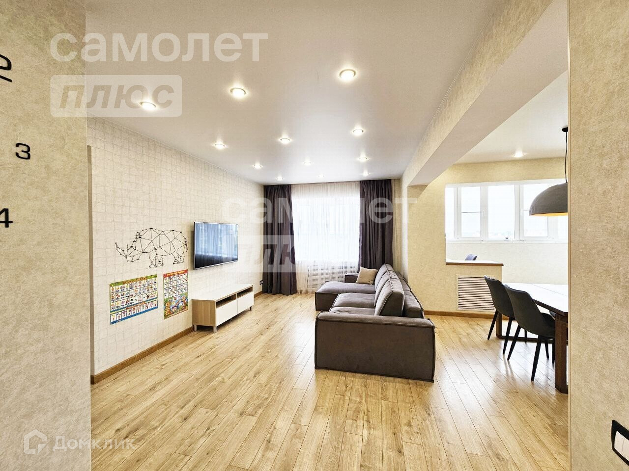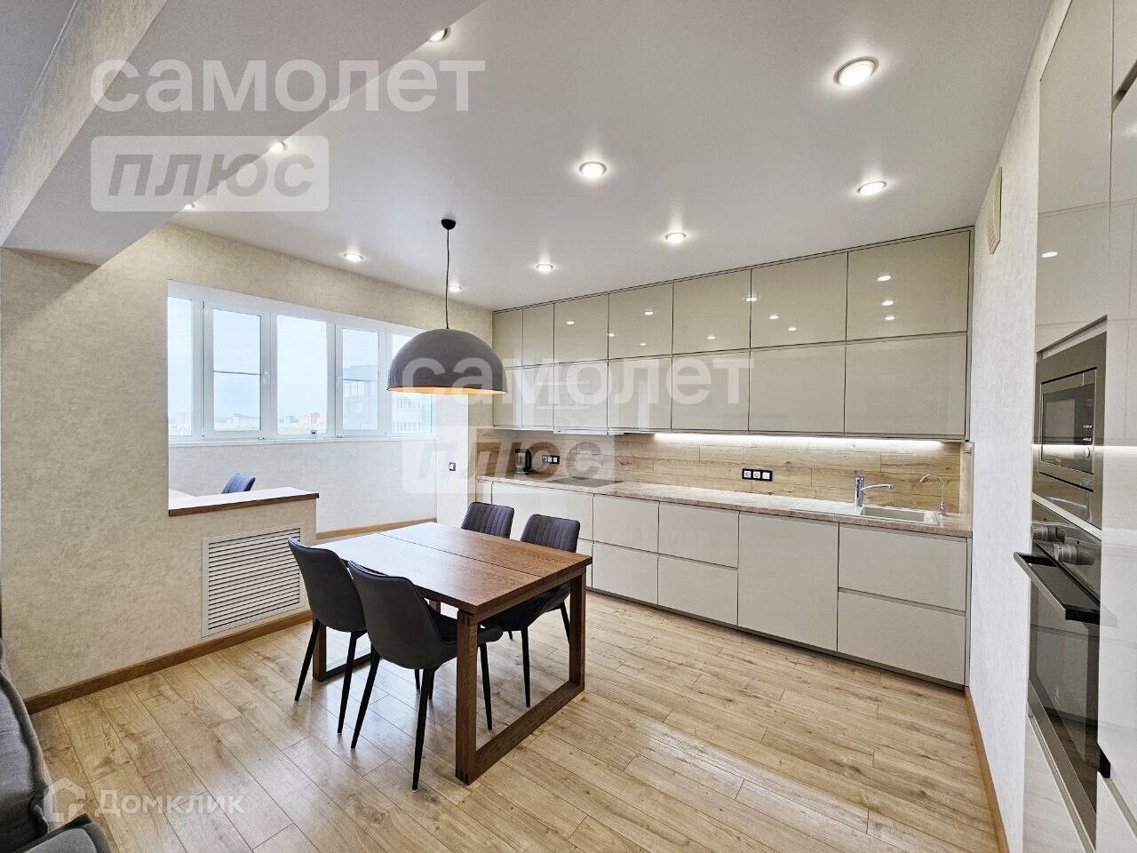 Просторная кухня-гостиная 40 кв.м, две изолированные комнаты. Одна из спален с гардеробной комнатой.