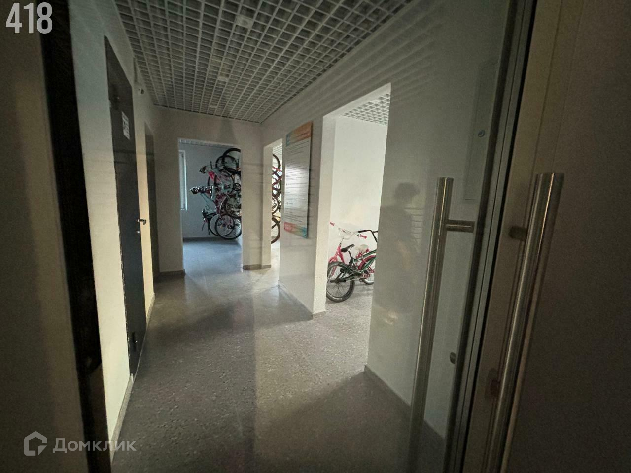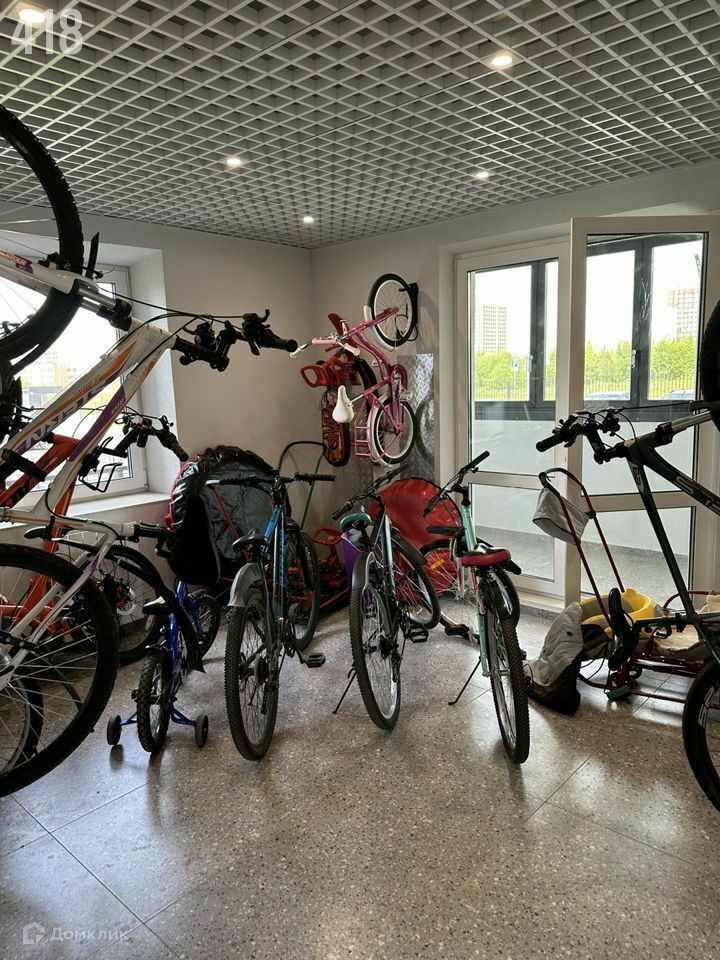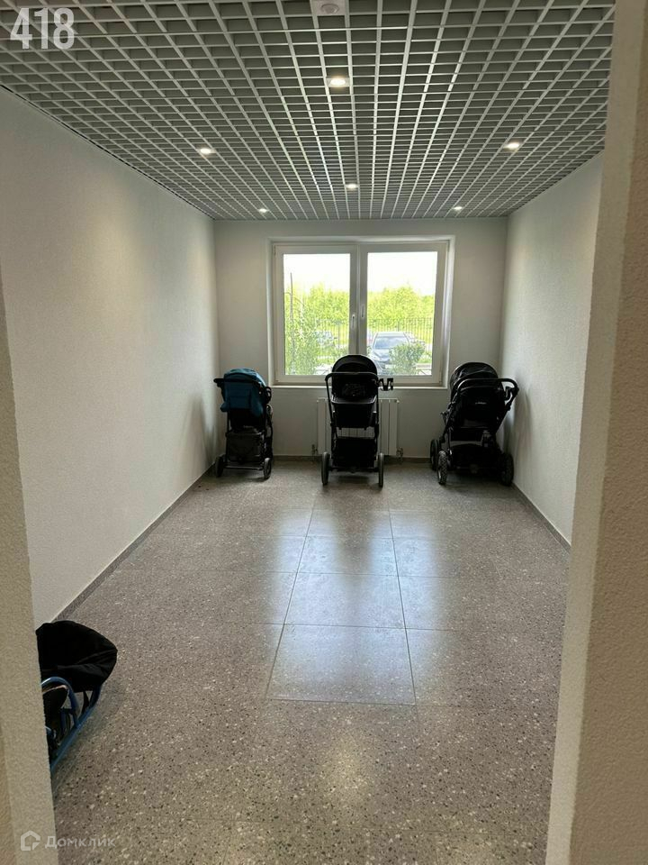На первом этаже колясочная для хранения велосипедов и колясок. Лапомойка.
