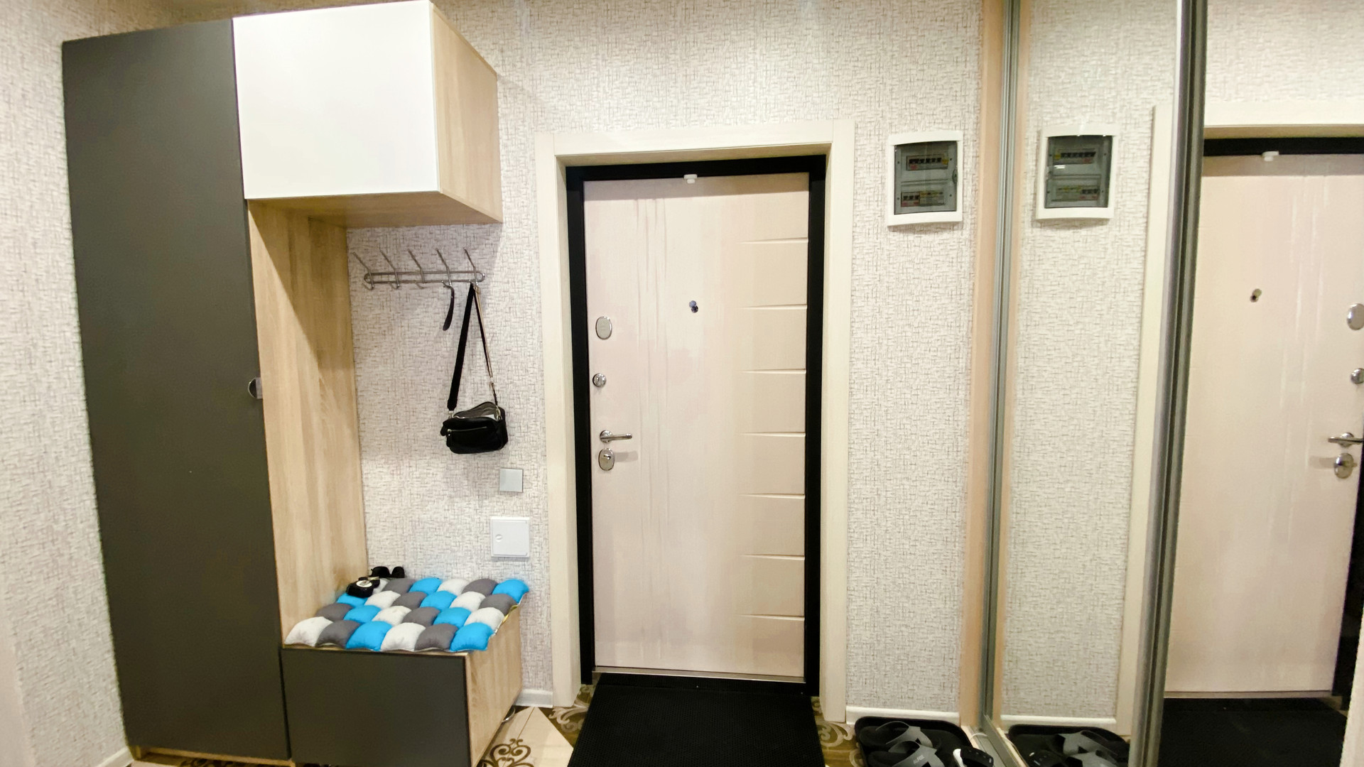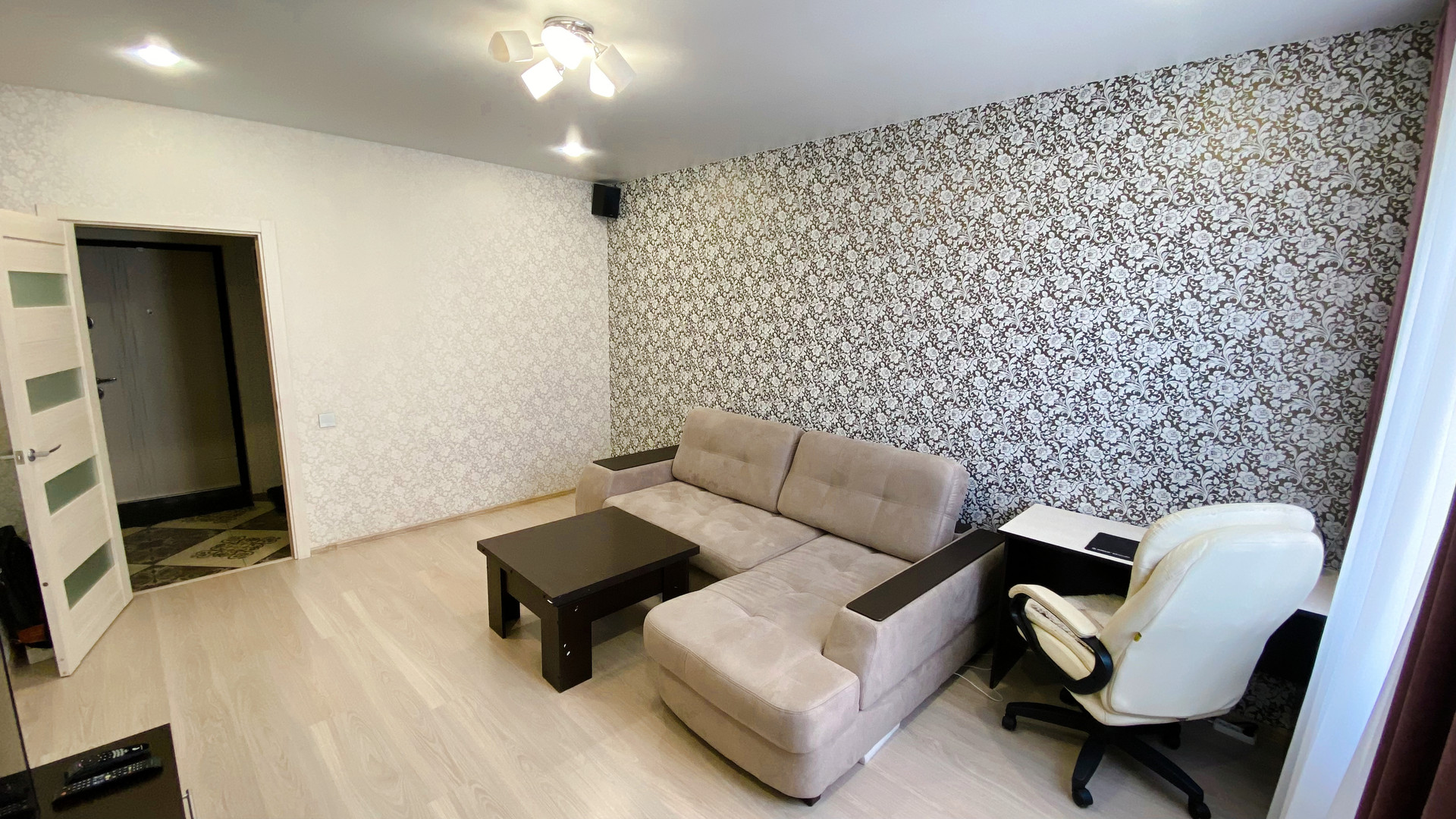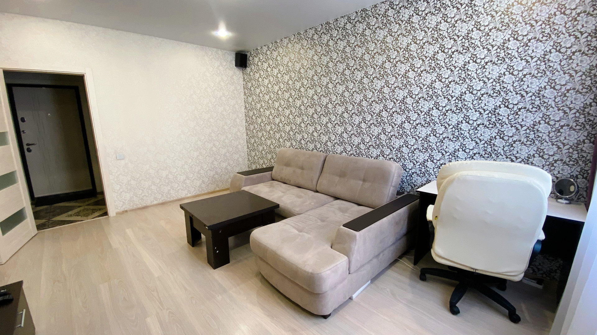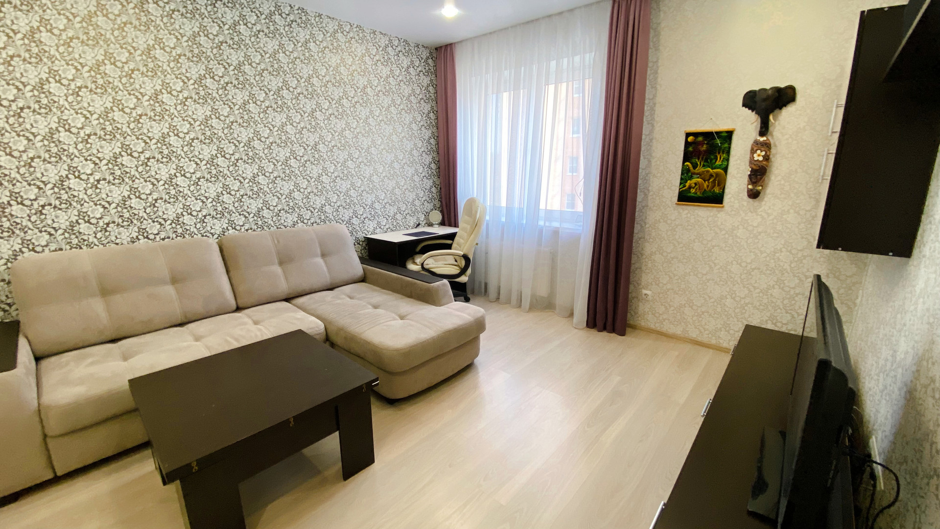В КВАРТИРЕ ОСТАЁТСЯ ВСЁ, ЧТО ВИДИТЕ НА ФОТО (кухня со встроенной техникой- индукционная варочная панель, духовка, микроволновка, вытяжка, холодильник, стол, стулья, полноценный и очень удобный двухместный гостевой диван. В ванной -огромное зеркало и столешница, встроенный шкафчик с полками и корзиной для белья. Прихожая и огромная гардеробная, которая вместит всё что нужно и избавит от шкафов в комнате. В зале недавно купленный диван, а также столик, шкаф настенный и TV. В квартире установлен умный дом (включаются светильники в каждом помещении отдельно, работает вытяжка в ванной по графику, по приложению, по команде «Алиса…». Всё делалось для себя и в аренду не сдавалось. Большая 12-метровая кухня-гостиная и 5-метровый балкон. Комфортный для проживания 5 этаж