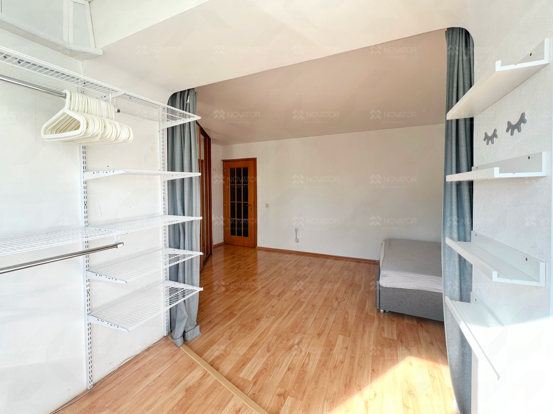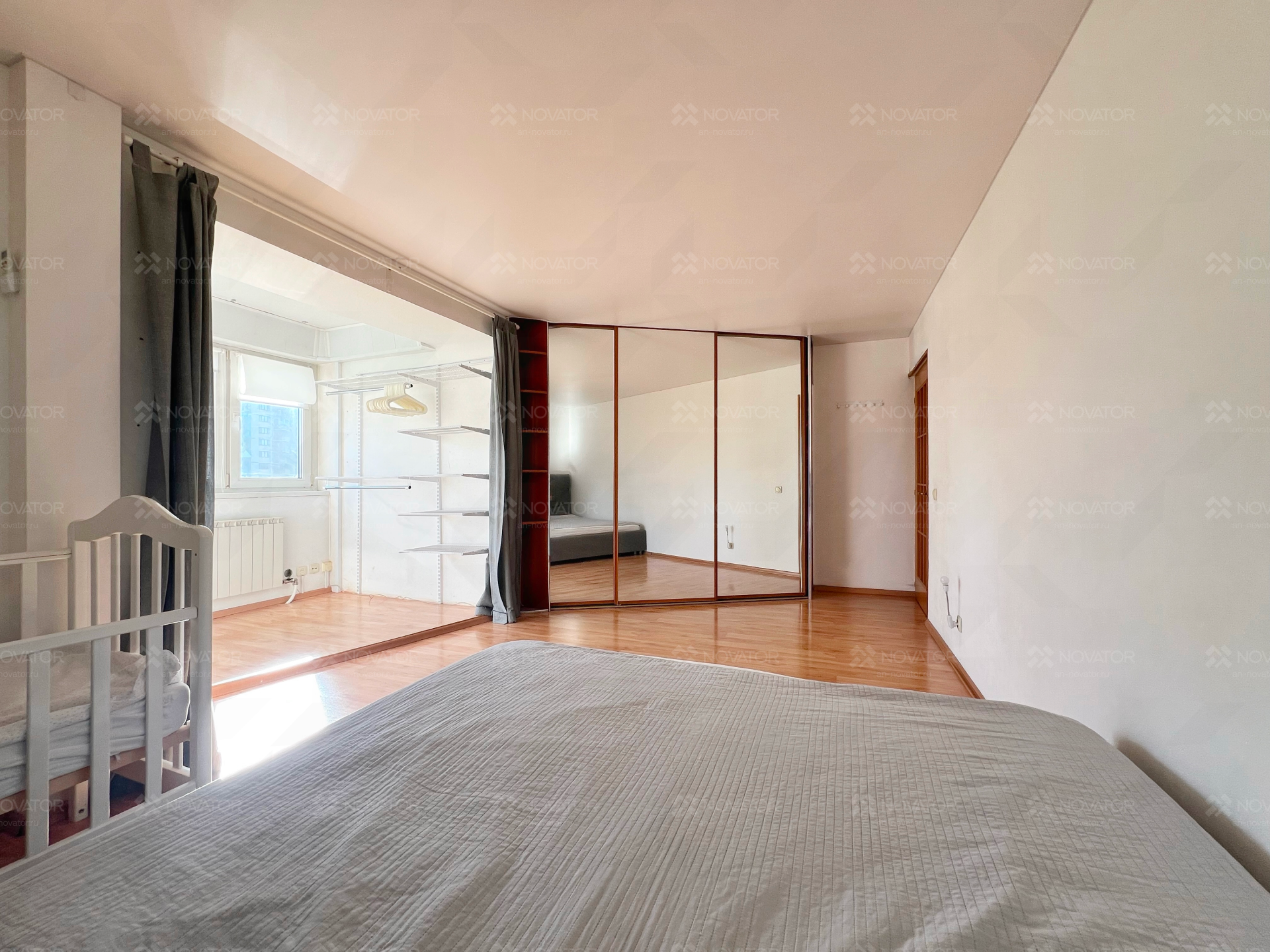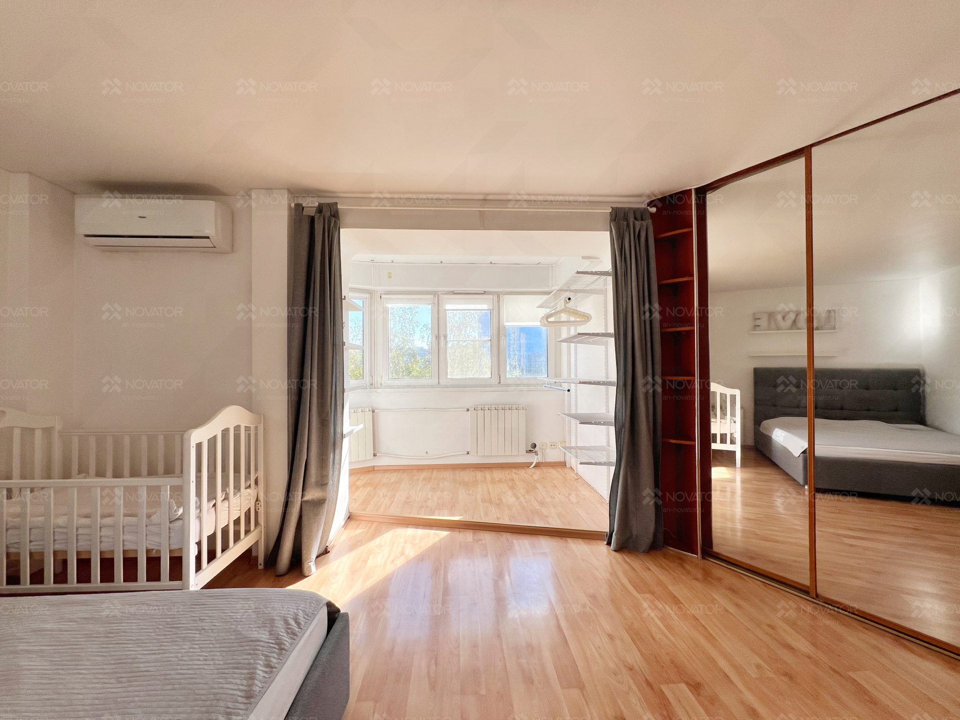 В квартире остаются: гардеробные открытие системы, 2 встроенных шкафа, в котором помещается весь гардероб на 3-4 человека, кухонный гарнитур, микроволновая печь, зеркала, новый кондиционер, холодильник и стиральная машина.