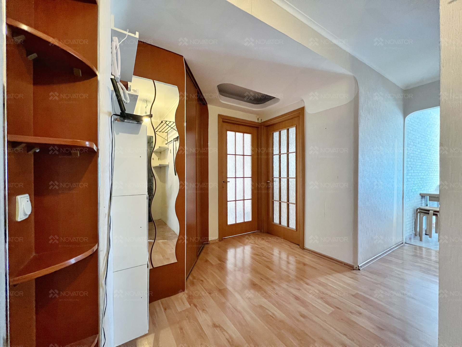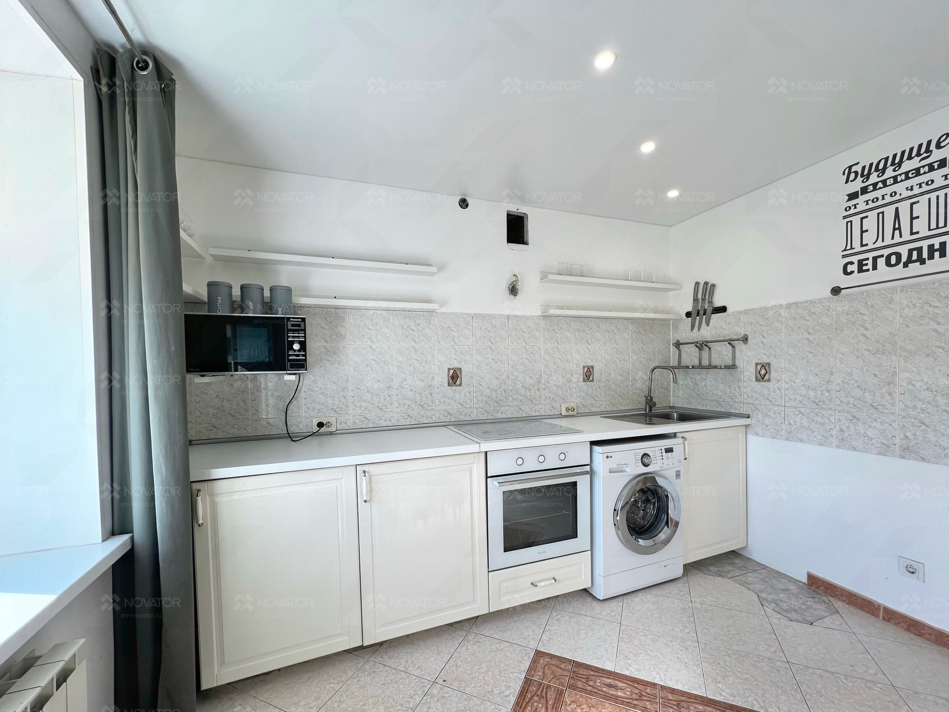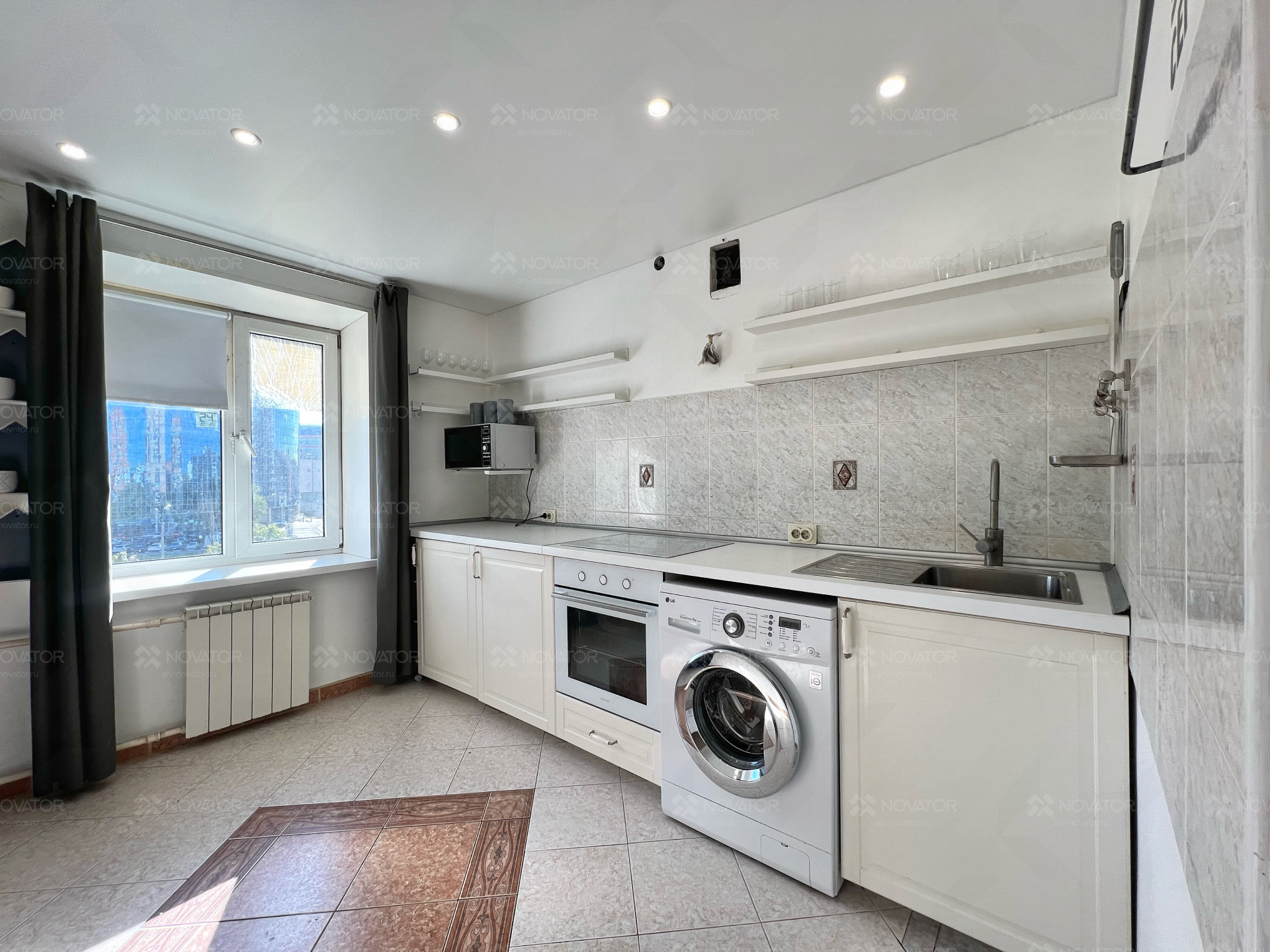 В квартире остаются: гардеробные открытие системы, 2 встроенных шкафа, в котором помещается весь гардероб на 3-4 человека, кухонный гарнитур, микроволновая печь, зеркала, новый кондиционер, холодильник и стиральная машина.