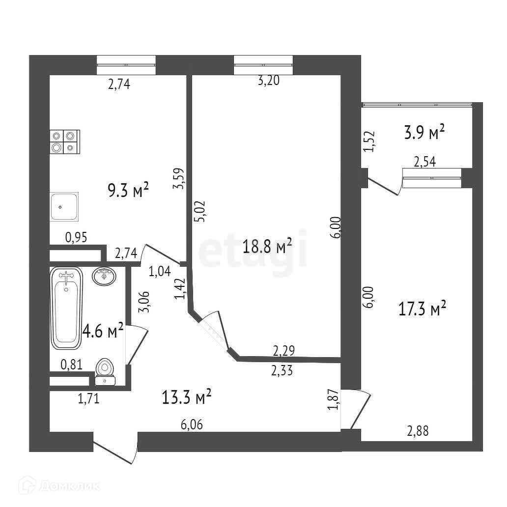 Общая площадь 68 м2