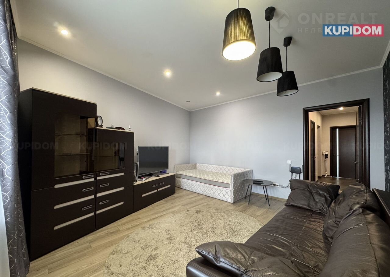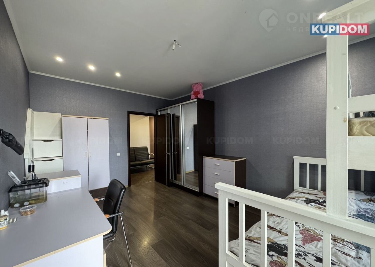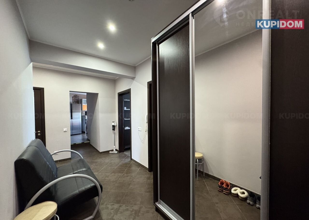 Планировка: просторная прихожая с гардеробной зоной, совмещенный санузел (унитаз, стиралка, ванна, раковина), 2 большие спальные комнаты и 1 комната детская, 2 лоджии, кухня-гостиная.