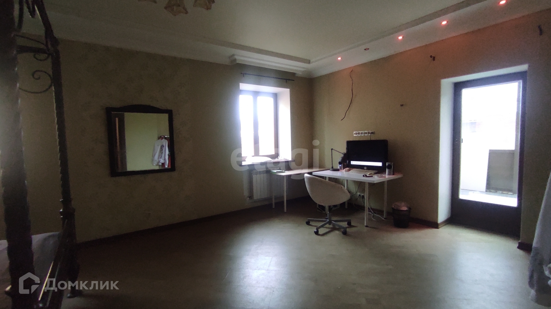 Спортзал большой, можно использовать для групповых занятий. Есть зеркальная стена. Оборудован принудительной вентиляцией. В цокольном этаже очень большая кладовка, которая может использоваться как мастерская, можно установить оборудование и стелажи.