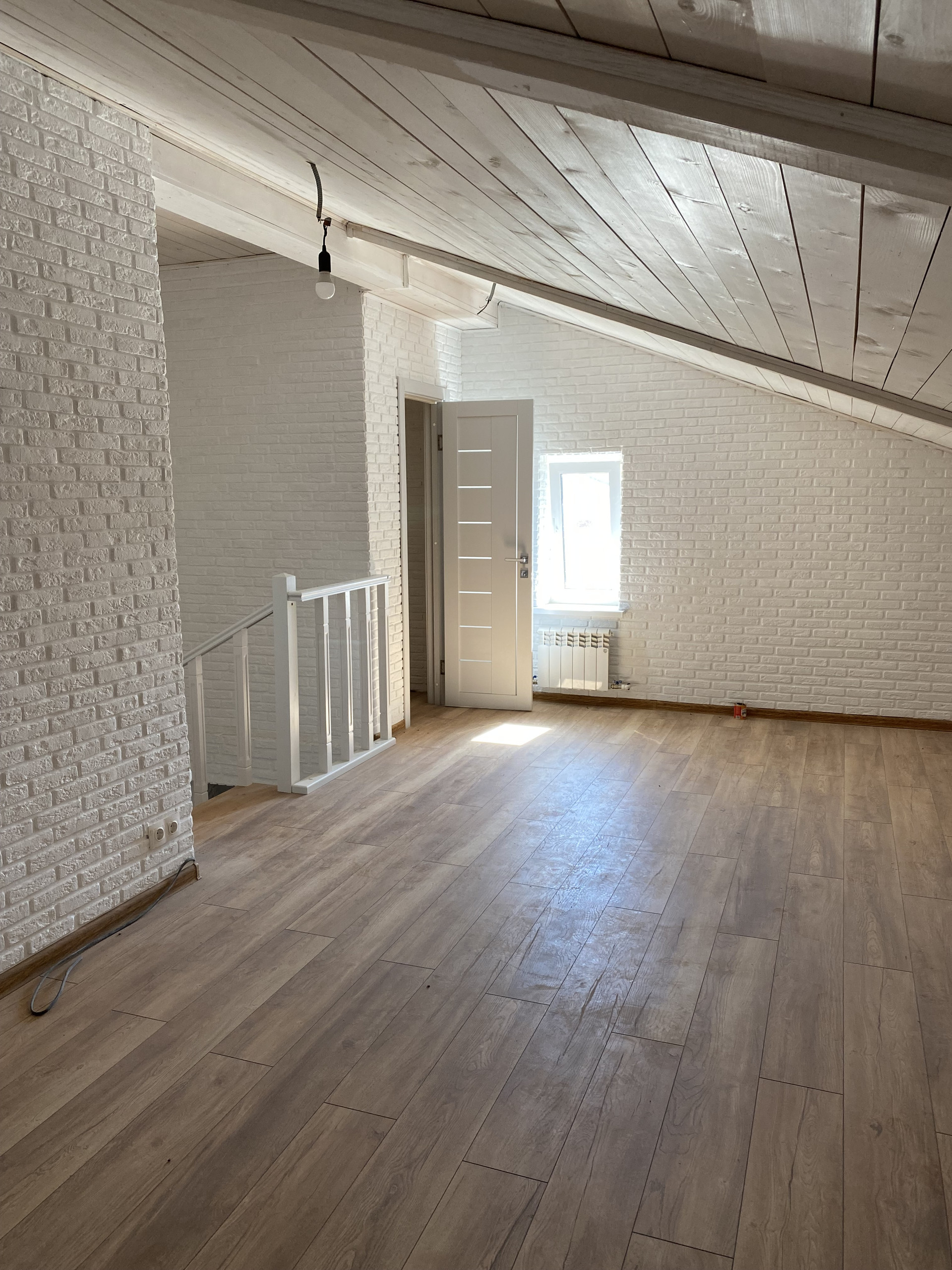 В доме 3 этажа (третий этаж мансарда) . На первом этаже располагаются кухня-столовая и гостиная, санузел. Отопление от индивидуального газового котла. Электричество, вода и канализация - городские. На втором этаже - две просторные спальни и санузел с ванной. На третьем одна большая светлая комната с мансардными окнами. Весь ремонт сделан в белых тонах, поэтому комнаты кажутся более объемными и просторными.