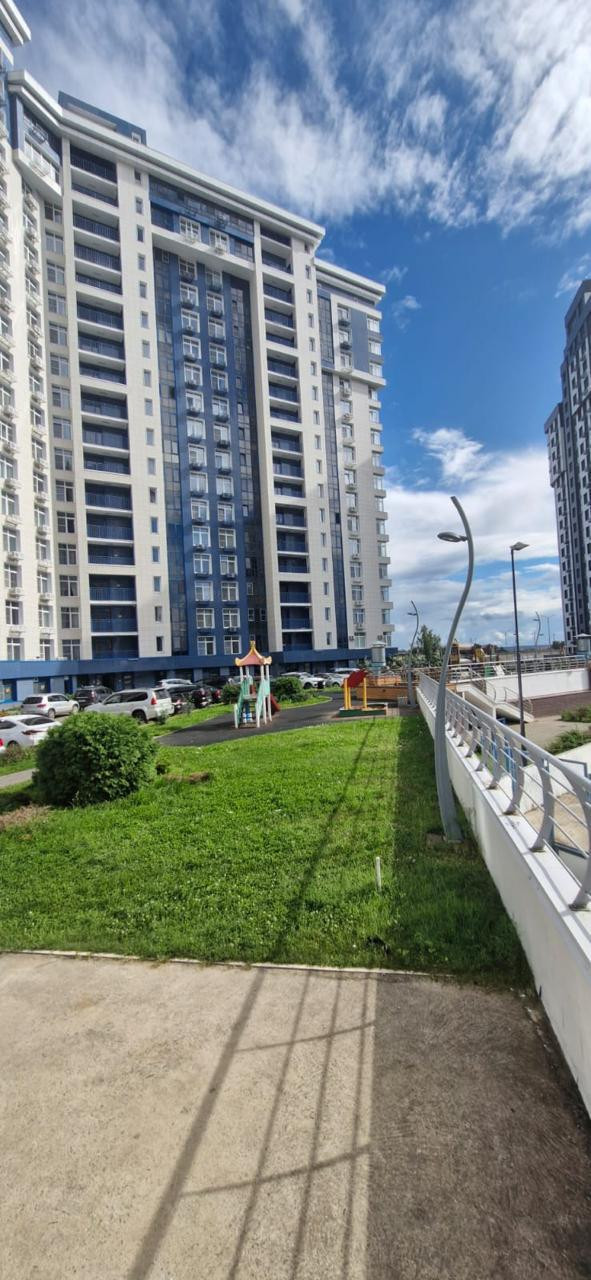 Сдаётся в новом комплексе с развитой инфраструктурой , дет площадки, сад, кафе, магазины, аптеки, больница, спортивные комплексы, автобусные  остановки. Квартира с шикарным видом, хороший качественный ремонт, современная планировка, мебель и техника.  С квартирой предоставляется машино-место на минус первом этаже.