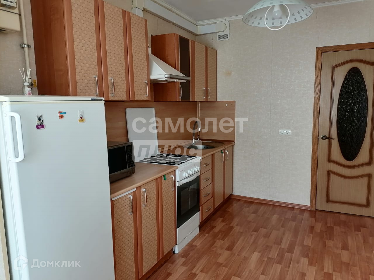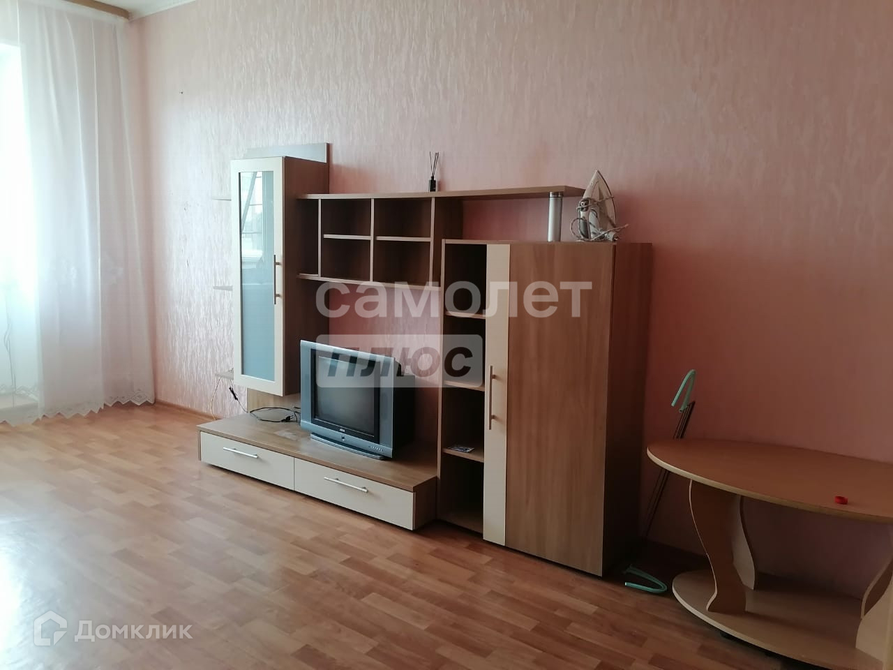 Квартира полностью мебелированная, в комнате есть диван 2-х спальный, кресло, гардеробная, шкаф в прихожей, стенка с телевизором, на кухне холодильник, микроволновая печь, утюг, стиральная машинка.