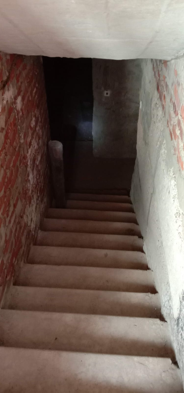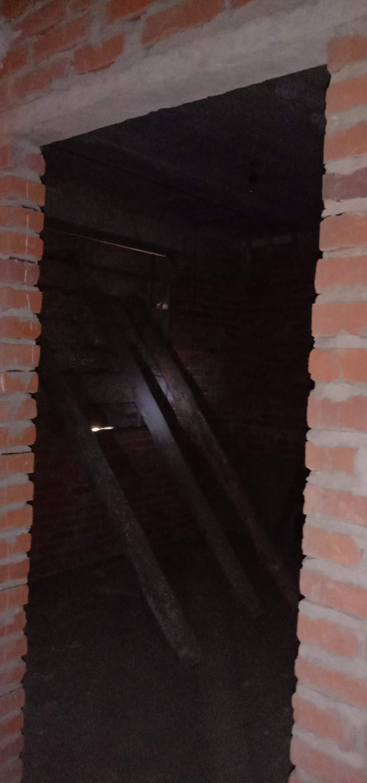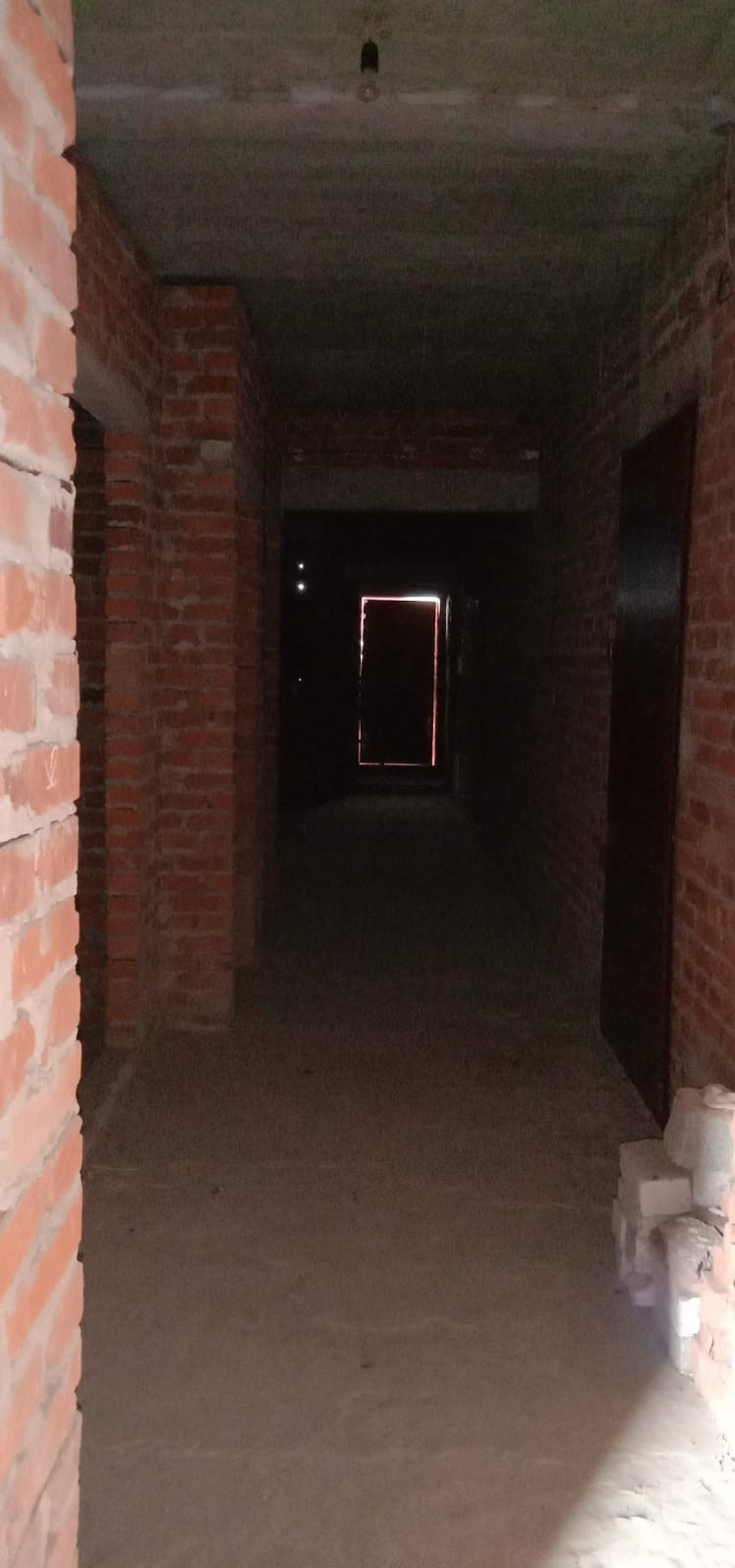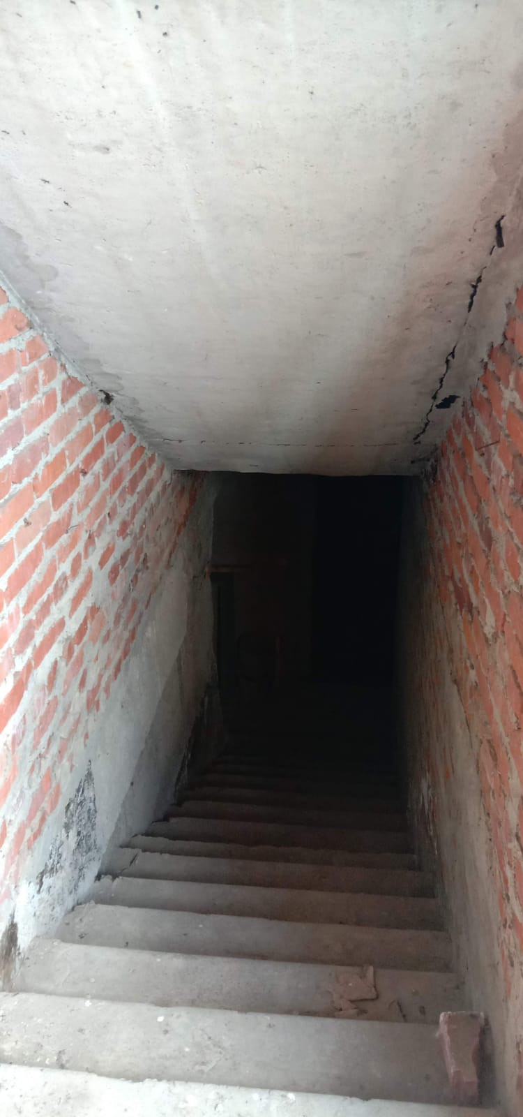 Возведена коробка: стены из красного кирпича и керамзитоблоков, железобетонные перекрытия, фундамент ленточный сборный, кровля - шифер.