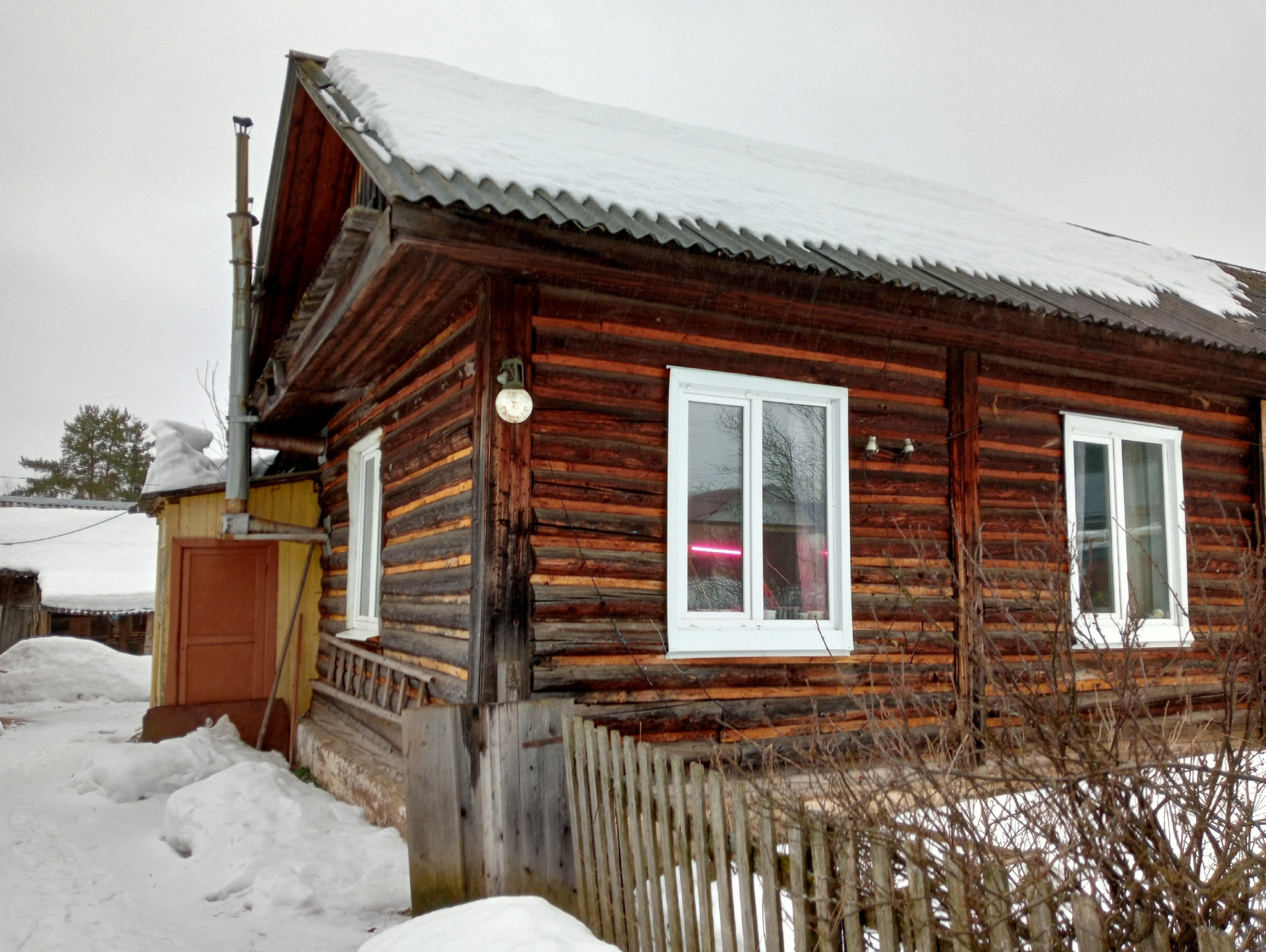 1-этажный жилой бревенчатый дом с двумя холодными пристроями и гараж, баня с предбаником. Газовое отопление, своя водяная скважина, канализация.11 соток земли,участок разработан