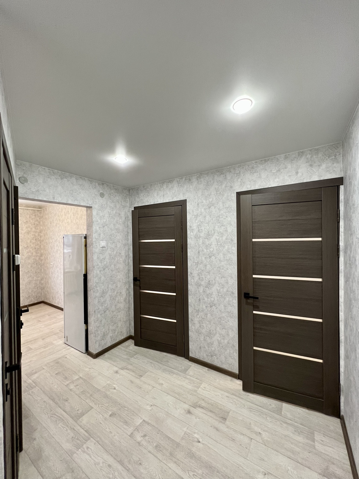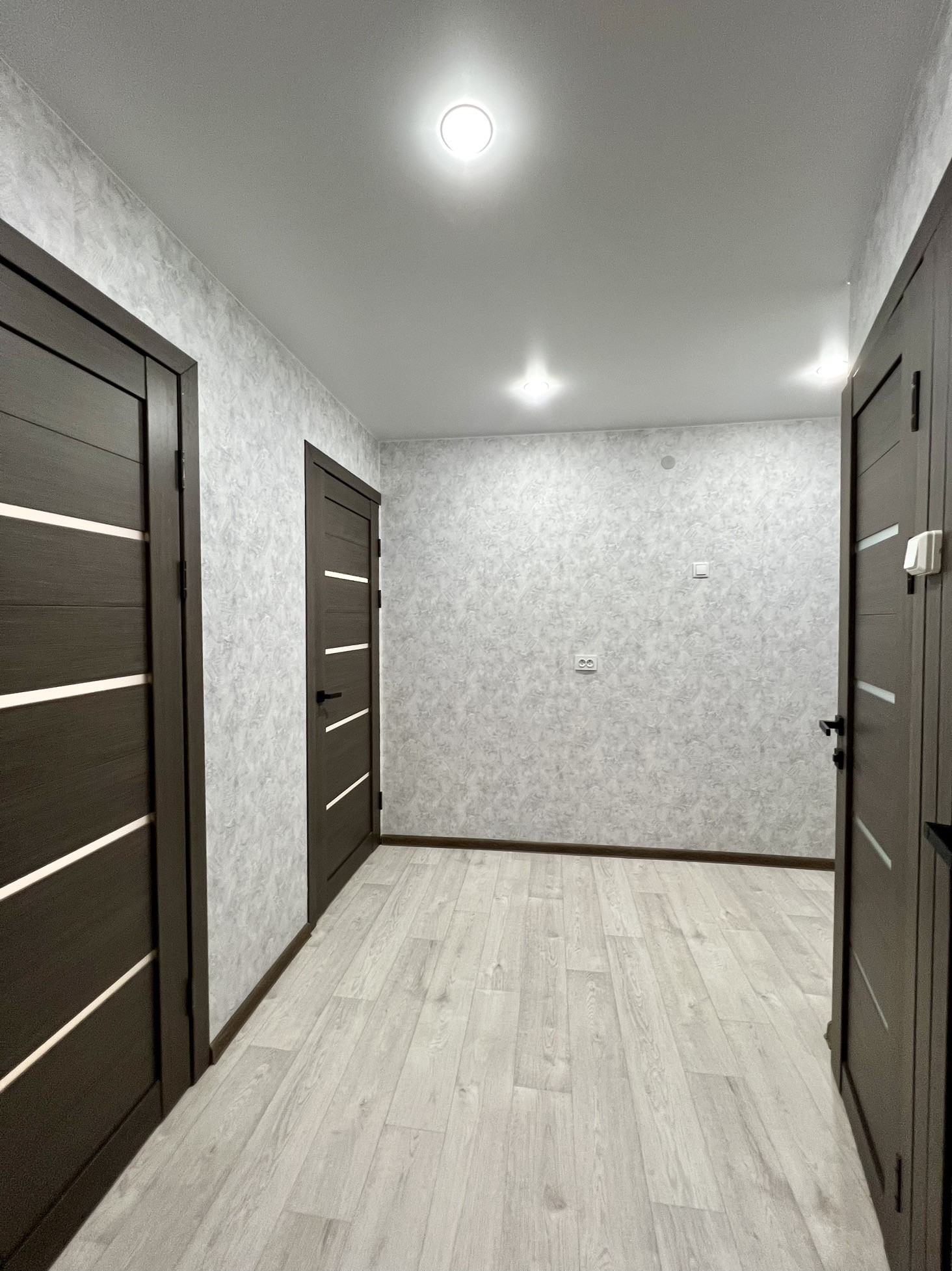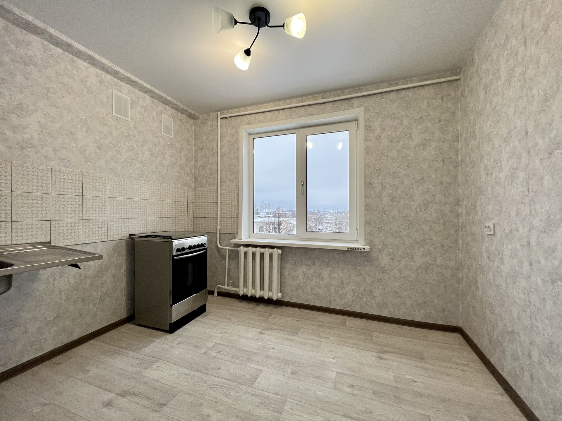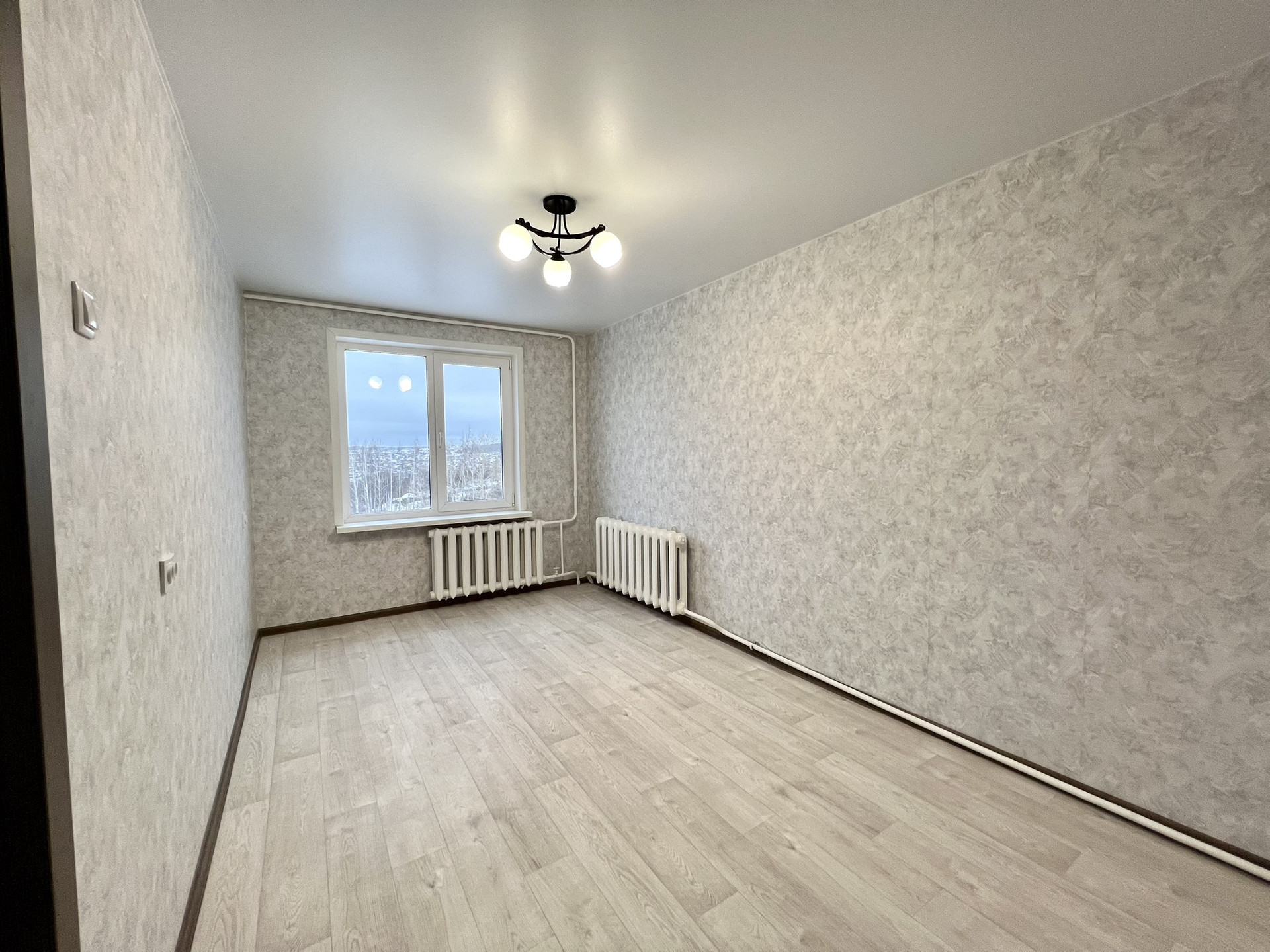 В квартире заменены полы, выровнены стены, заменена проводка, на всех окнах стеклопакеты, натяжные потолки. Разводка в санузле заменена, новые счетчики на воду, так же есть счетчик на газ.