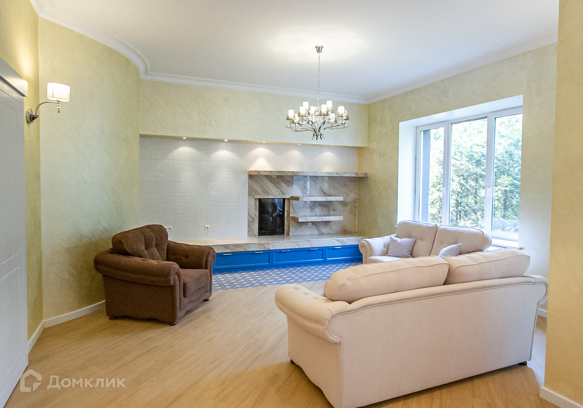 1 этаж: гостиная с камином с изразцовой плиткой и натуральным камнем. Кухня с новой люксовой бытовой техникой. Помимо кухни и гостиной на первом этаже расположен гостевой санузел, кабинет, выход на террасу и к гаражу на три авто.