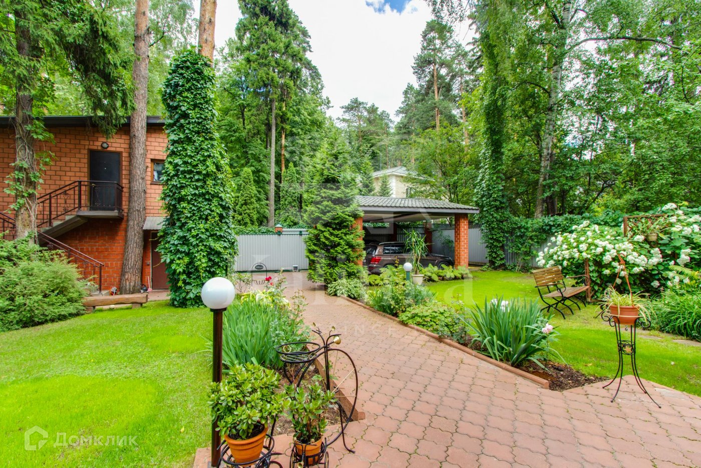 На участке расположен гараж на 2 м/м, парковка на 2-3 м/м, дом для обслуживающего персонала, домик-шале с камином/мангалом для отдыха на свежем воздухе. Территория облагорожена, высажены крупномеры, кустарники вымощены дорожки, установлено освещение. Коммуникации: спутниковое тв, интернет, магистральный газ, скважина, септик, электричество 15 кВт.