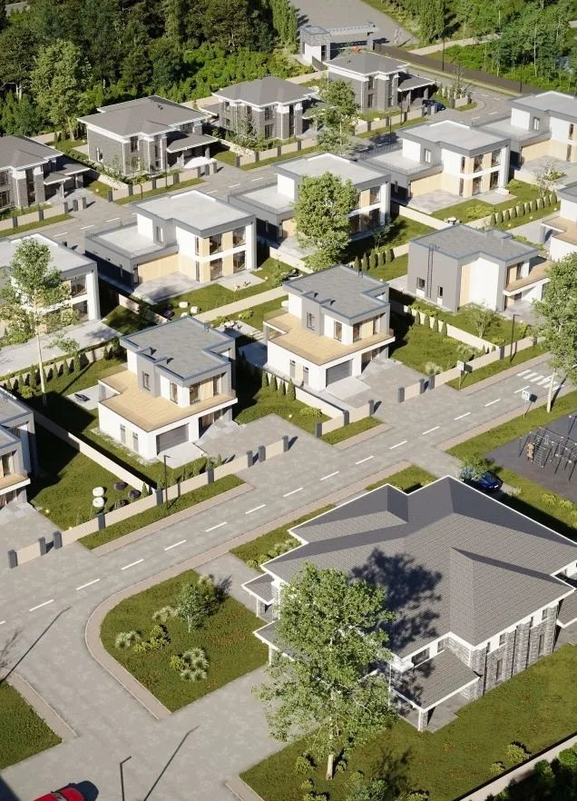 В поселке проложены широкие асфальтированные дороги, есть детские и спортивные площадки, охраняемая территория с видеонаблюдением, гостевая парковка у КПП, действует круглосуточная охрана.