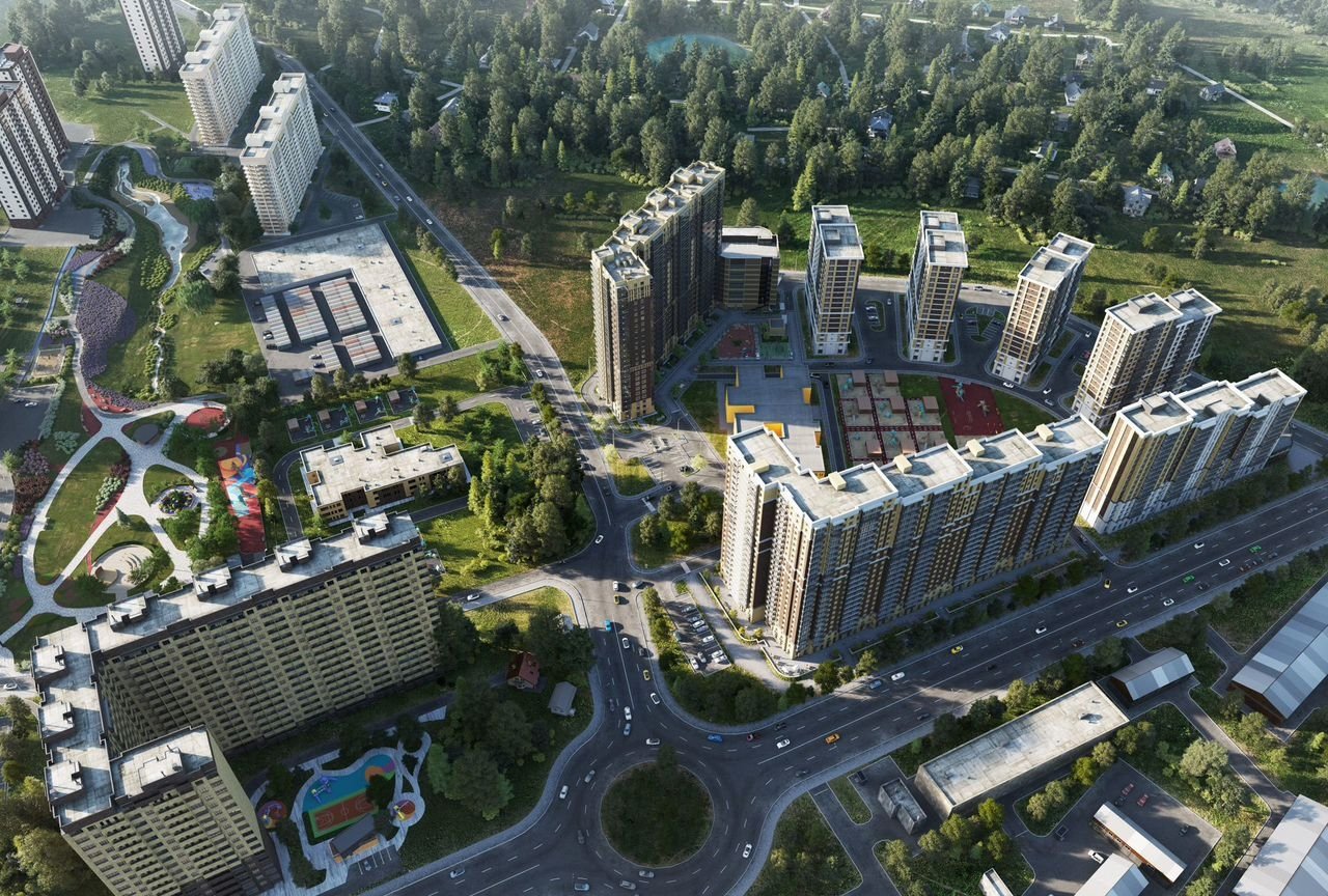 Жилой комплекс создается в рамках единой архитектурной концепции «Город в городе», он будет состоять из семи монолитных домов комфорт-класса. Фасады домов выполнены из серого натурального камня и терракотового кирпича. Входные группы занимают уютные дизайнерские лобби. Комплекс расположен в окружении четырех парков.