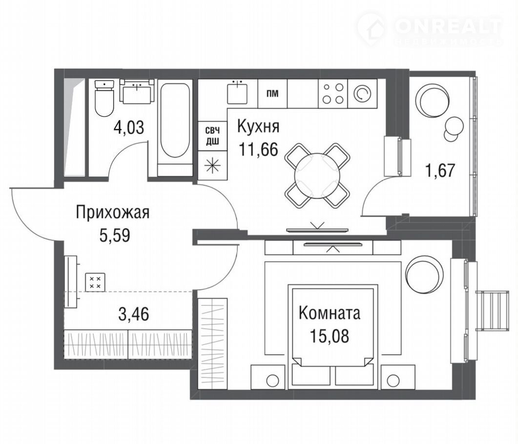 Количество комнат 1