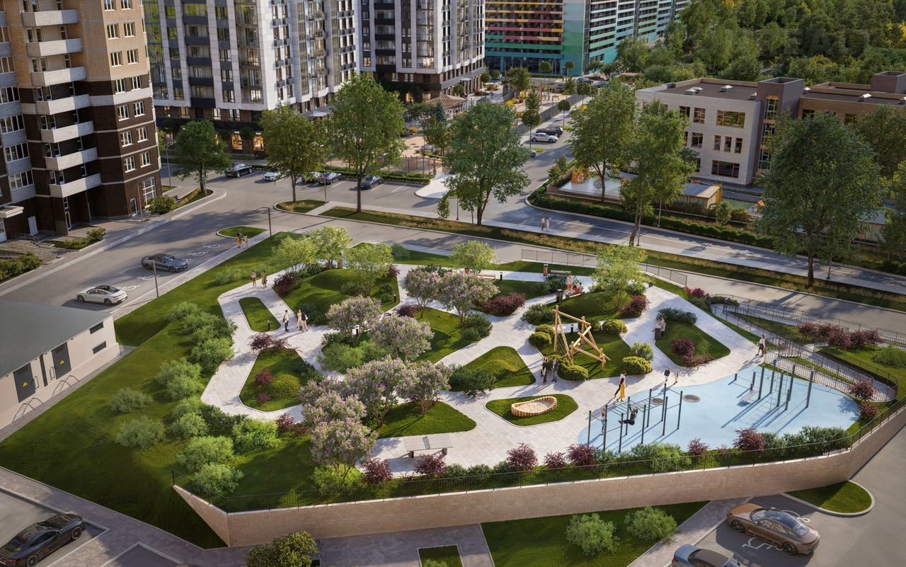 • Развитая инфраструктура: в шаговой доступности расположено 6 детских садов, школы и лицей, магазины, кафе, салоны красоты и спортивные объекты.