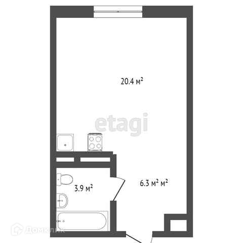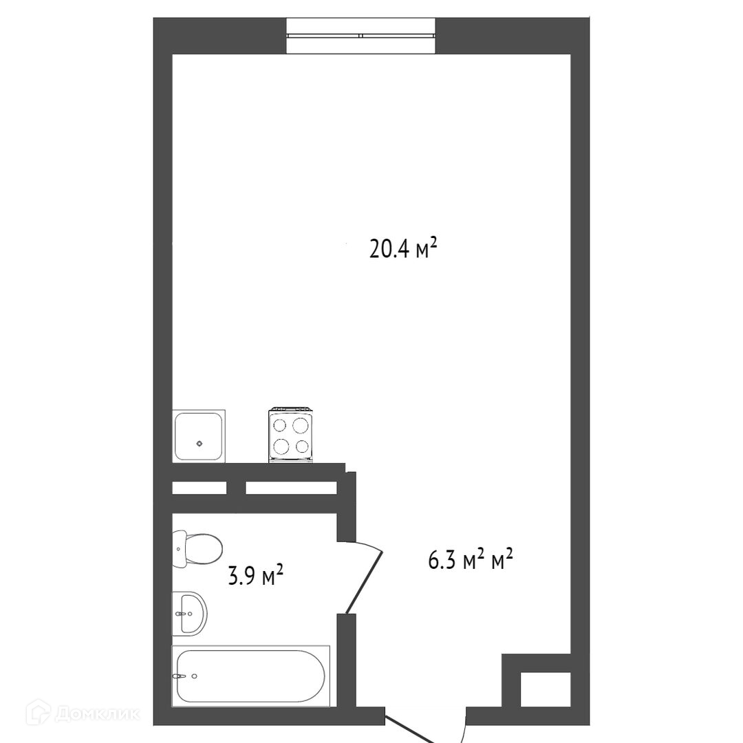 Общая площадь 25.4 м2