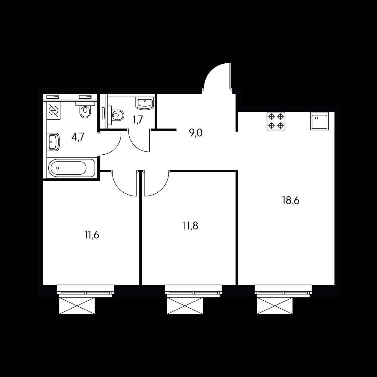 Площадь кухни 18.6 м2