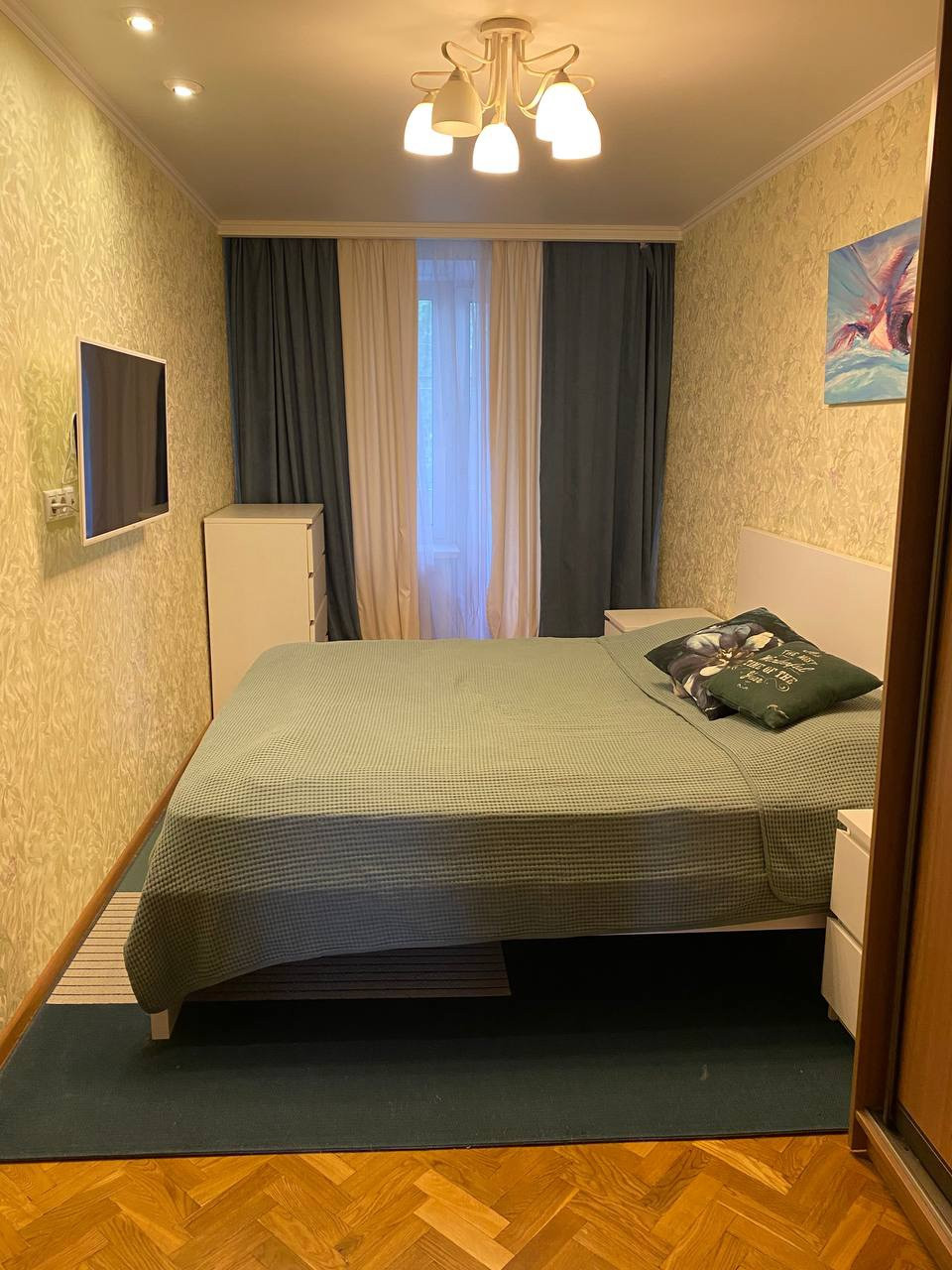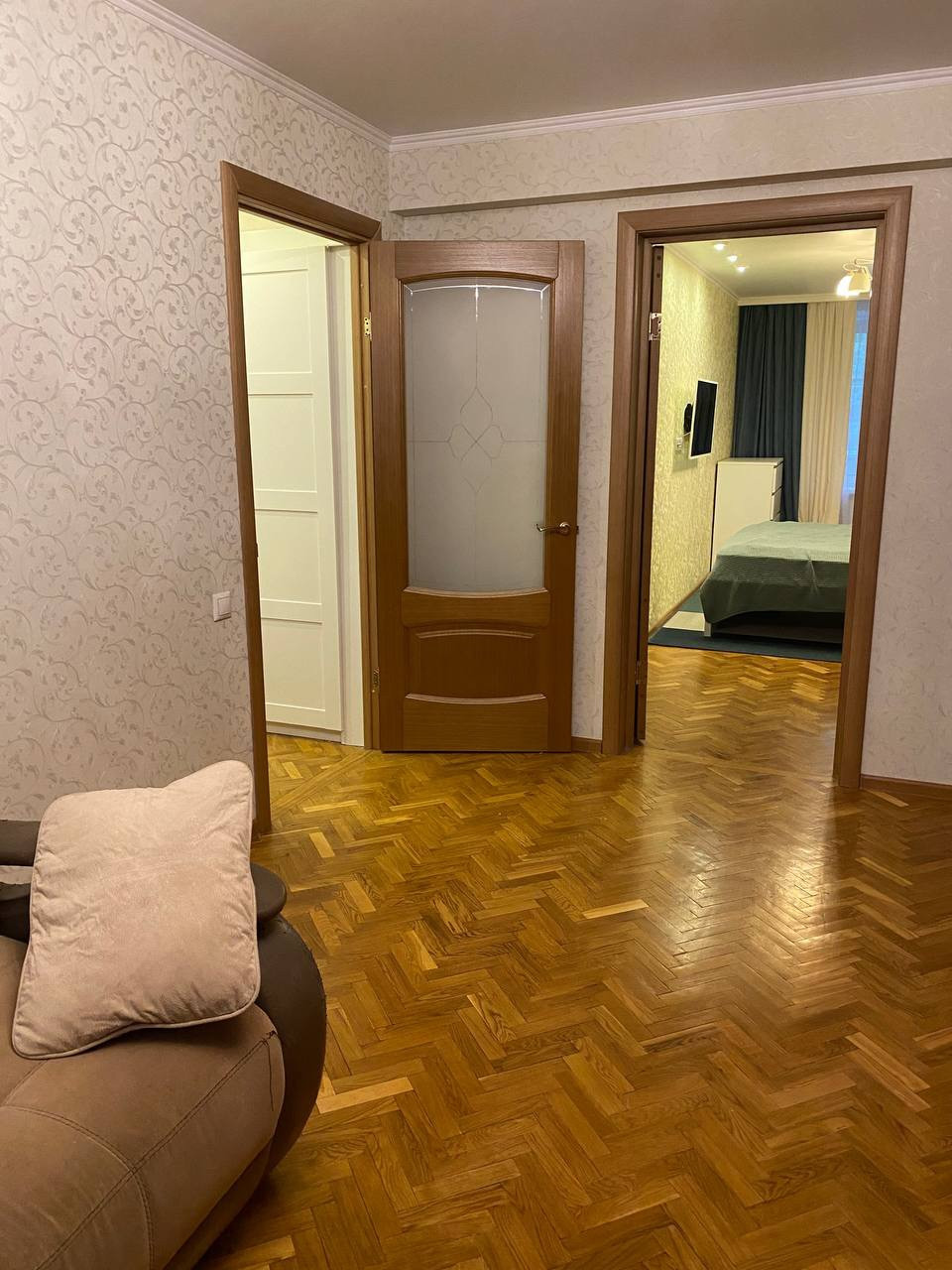 Квартира распашонка, вид на тихие, зелёные дворы. 2 комнаты изолированные, одна комната проходная, но ее легко можно сделать изолированной.