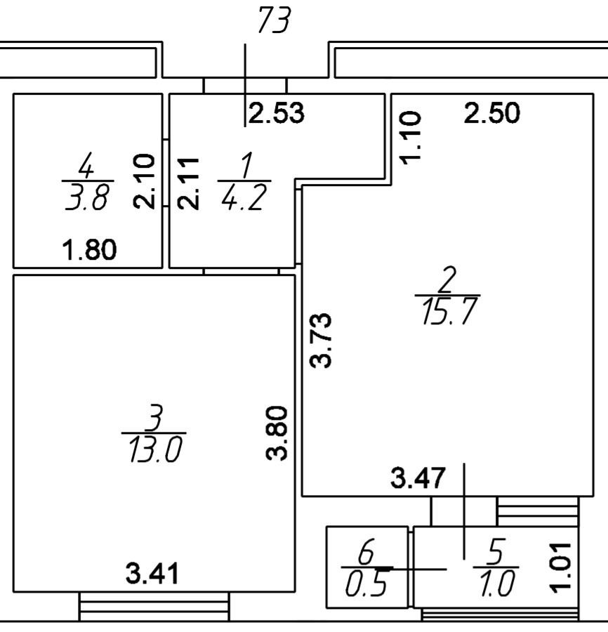 Общая площадь 36.7 м2