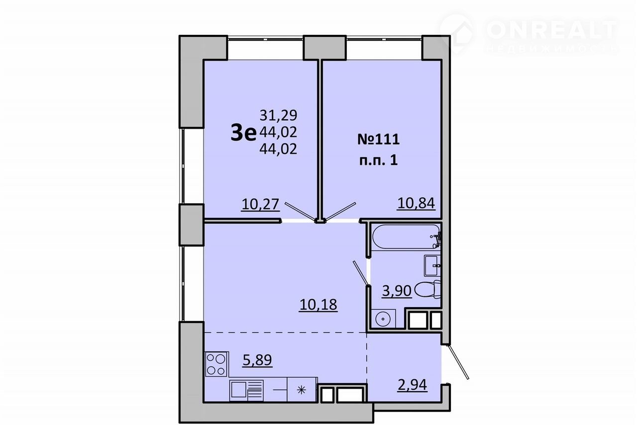 Площадь 44,02 м²