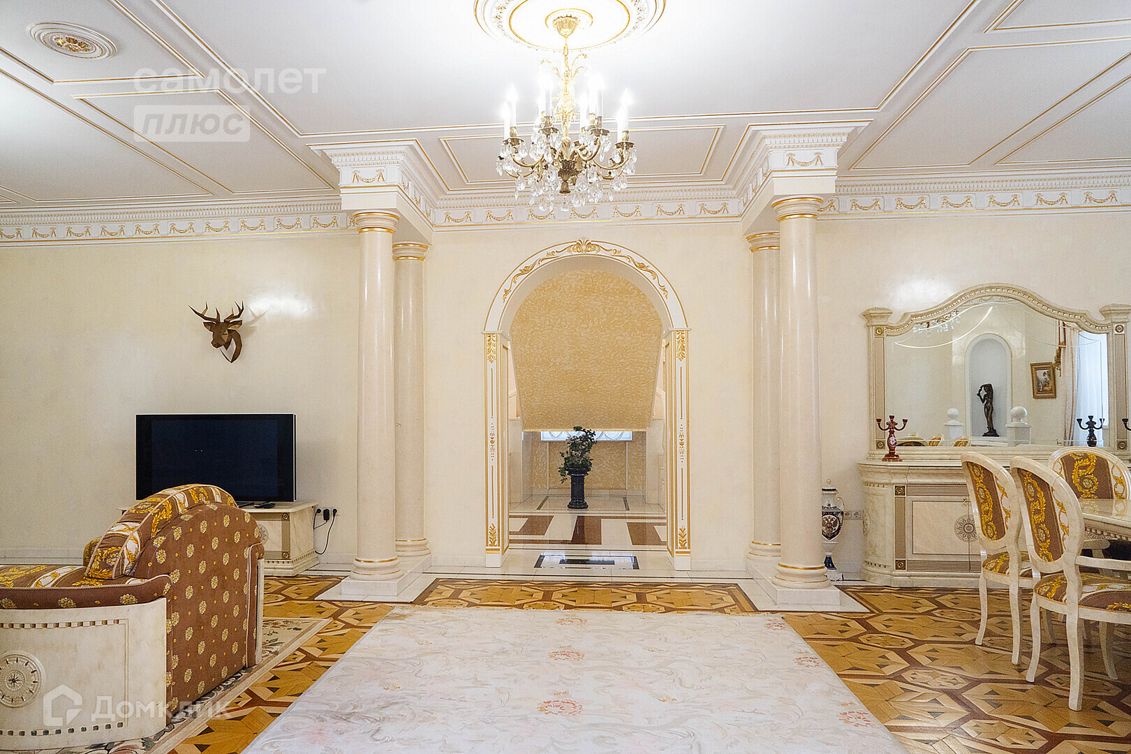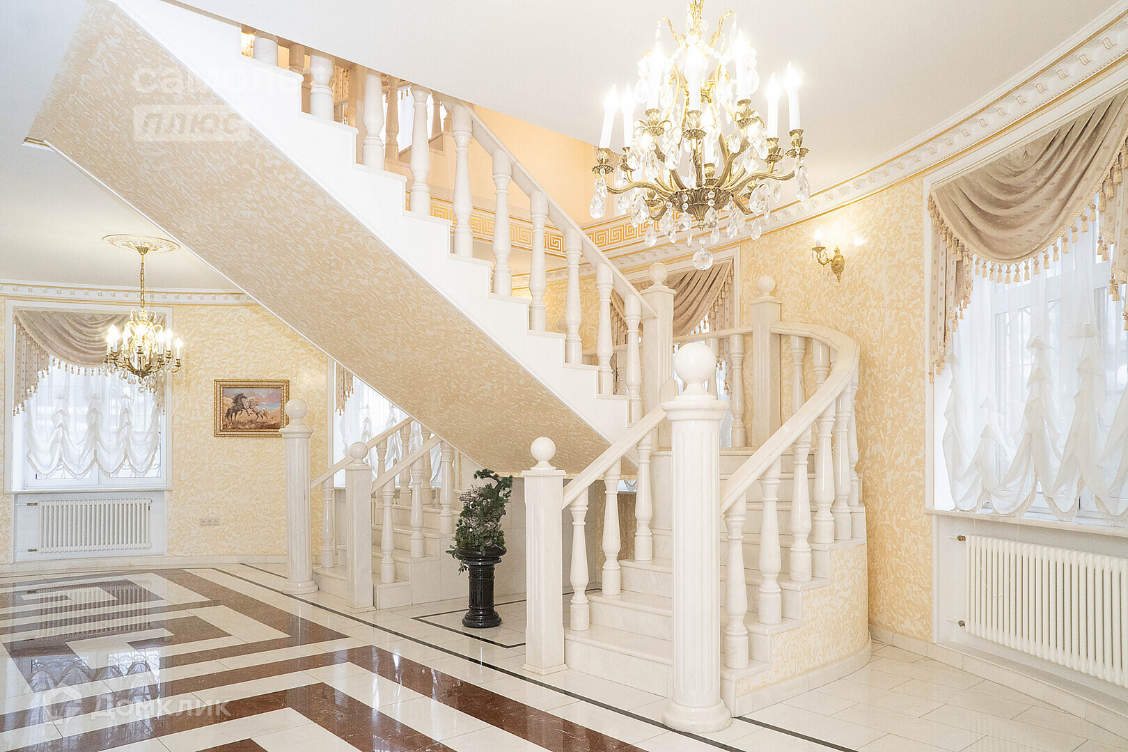 2\. Основной жилой дом, общая площадь 800 кв.м. Дом построен по уникальному проекту, в доме полностью мраморная лестница, реализованы дизайнерские решения в классическом стиле, использованы натуральные компоненты (дерево, мрамор) имеет 4 уровня: