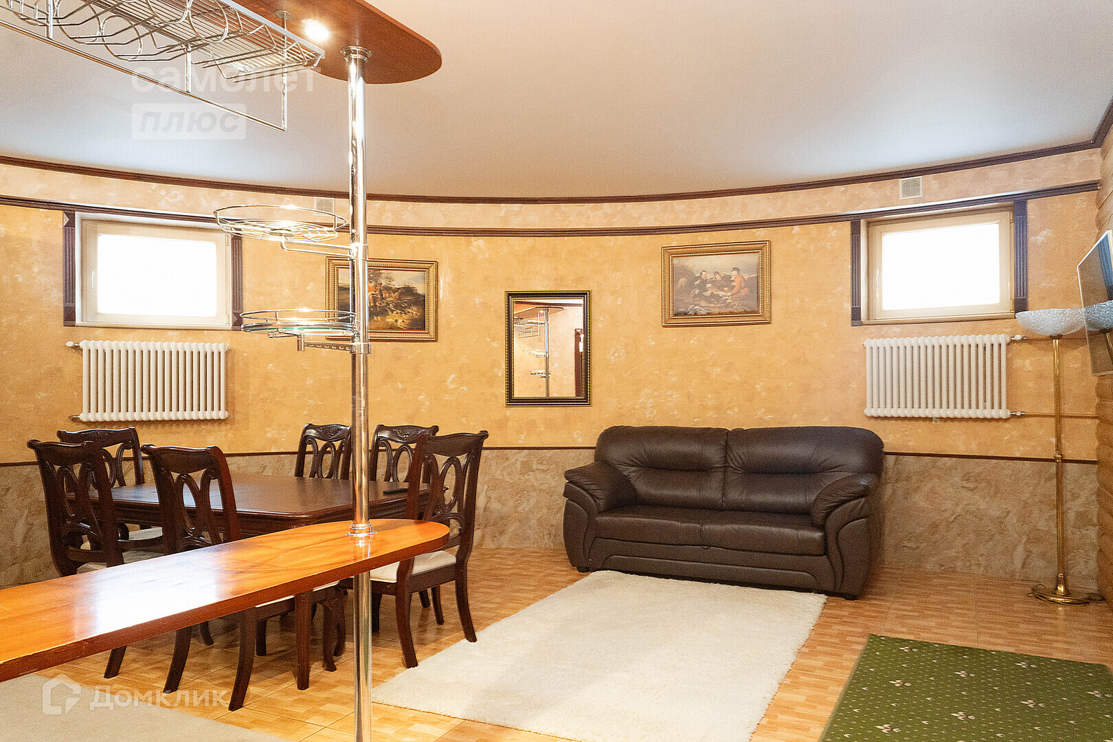 · Цоколь: сауна, душевая с ванной и гидромассажем, комната отдыха, бильярдная (стол 12 футов, русский бильярд), с/у (3 помещения), котельная (газовый котел, система водоочистки и подготовки воды с системой обезжелезивания, умягчения с ультрафиолетом из артезианской скважины 120 метров, бойлер ГВС на 300 литров, система климатобеспечения), кладовые (5 помещений), прачечная, полноценная кухня с барной стойкой и техникой.
