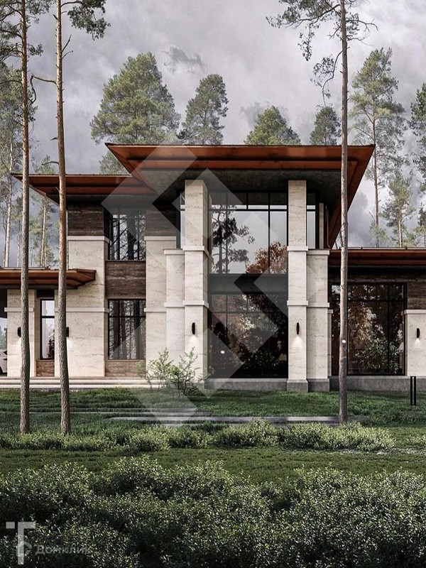 Дом выполнен в стиле Райт, главной особенностью которого являются удобство и комфорт для жизни, что позволяет безупречно сочетаться с окружающим ландшафтом. Дом спроектирован таким образом, что комнаты будто бы сложены вместе, но при этом состоят из отдельных секций. Это не мешает строению смотреться целостно и стильно.