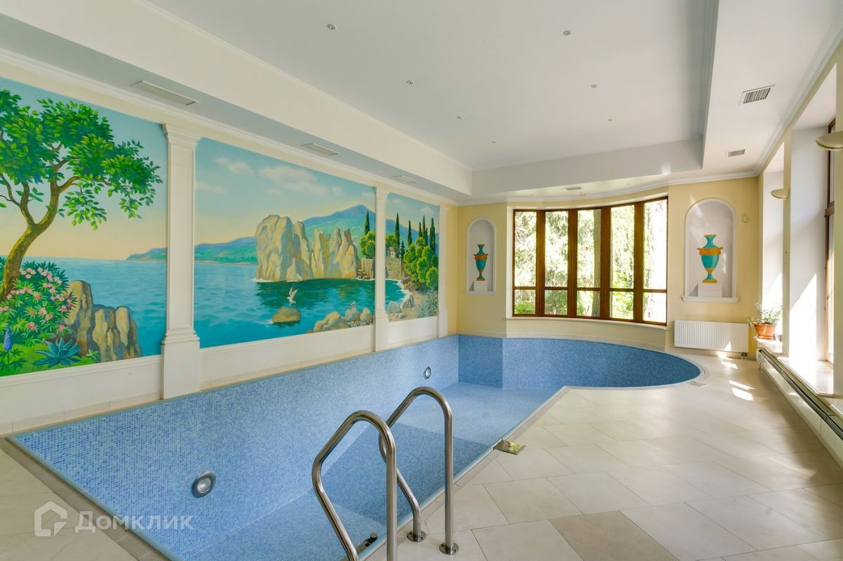ID 538169. КП Дипломат. Дом 550 кв.м на лесном участке 38 сотки в охраняемом коттеджном посёлке.  Планировкой дома предусмотрено четыре спальни, одна из которых на первом этаже, а также SPA-зона с бассейном и сауной. В доме просторная гостиная с камином и столовая с выходом на участок. Мансарда полностью оборудована под детскую игровую комнату.