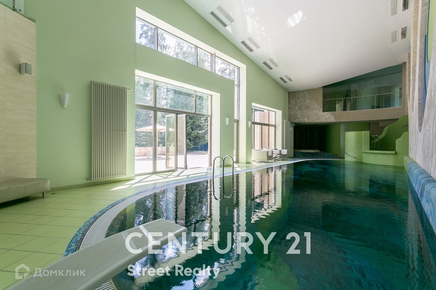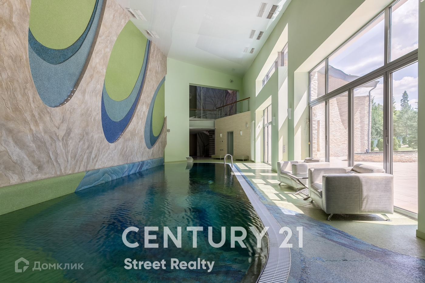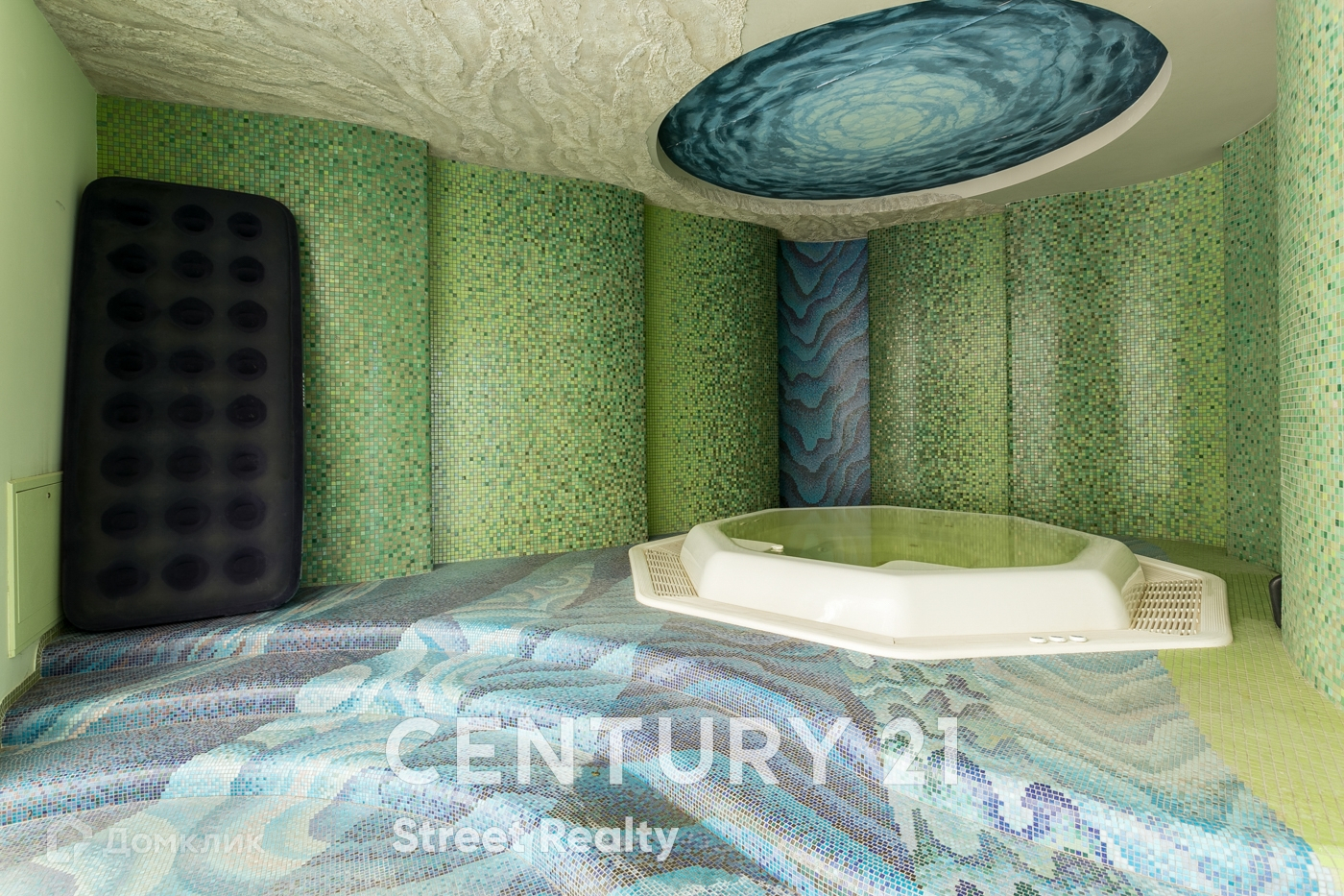 1й этаж: холл, кухня-столовая с панорамными окнами и выходом на террасу, гостиная с камином, кинотеатр с зоной отдыха, санузел, подогреваемый бассейн с противотоком, джакузи с выходом на террасу. Спальня, зона СПА: сауна, сонариум.