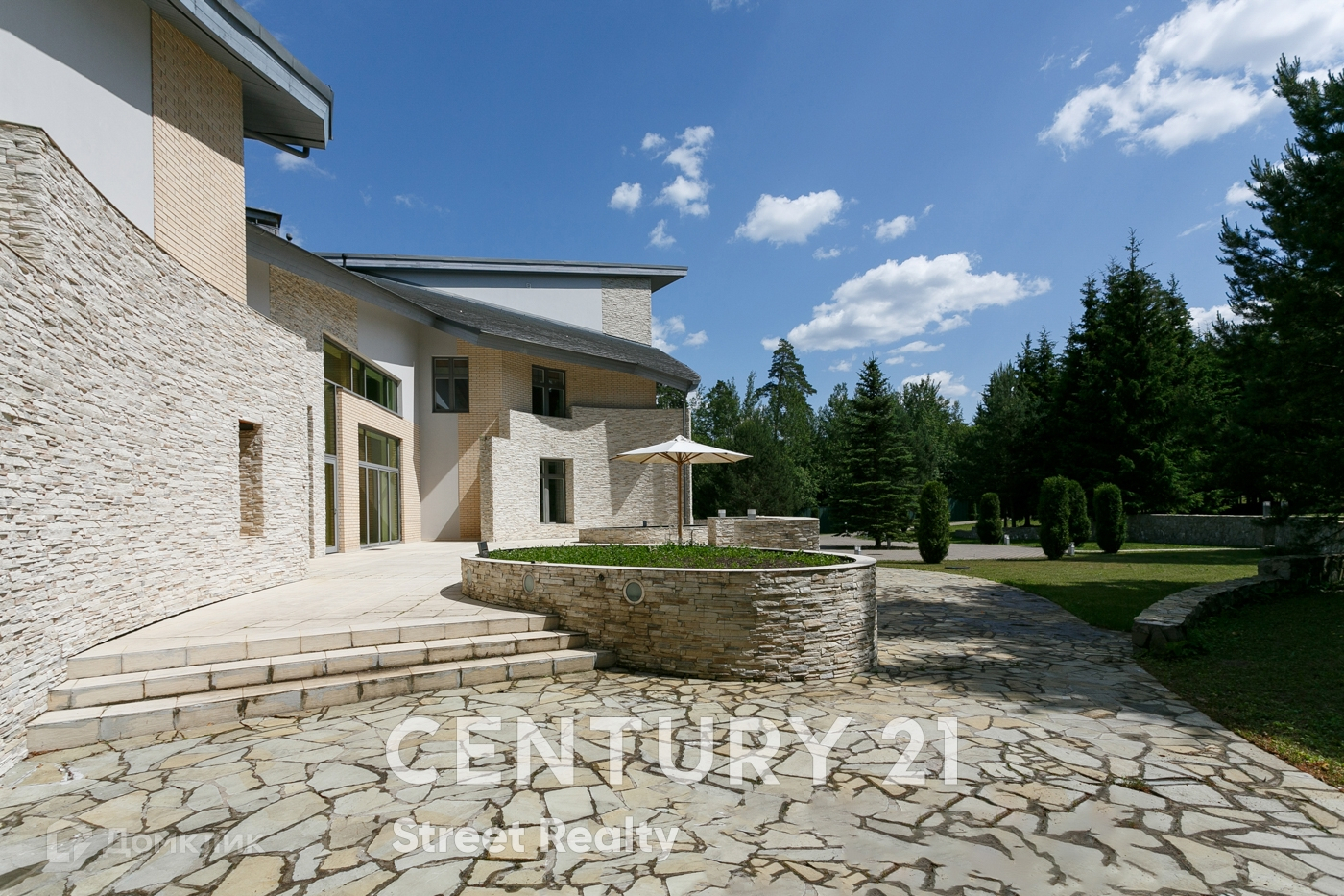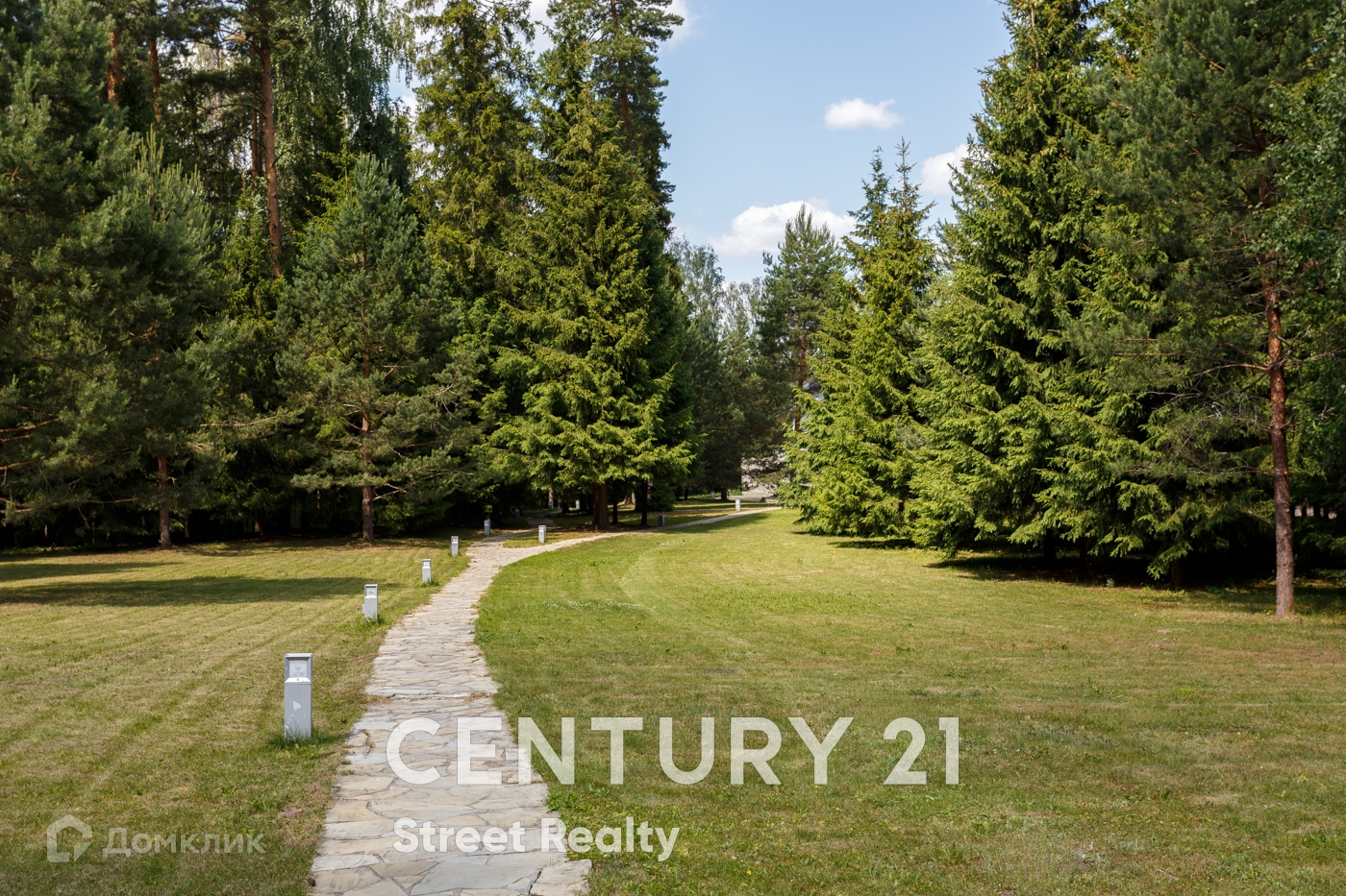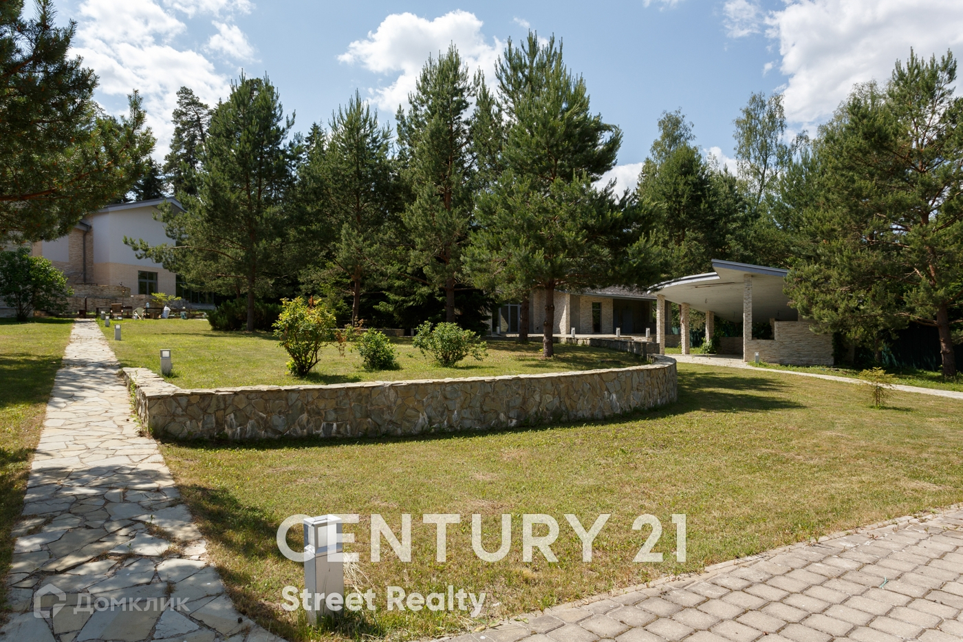 Территория загородной резиденции ухожена, освещена, Высажены цветы, ели, вековые сосны. Есть площадка для гольфа, которую возможно переоборудовать в детскую площадку.