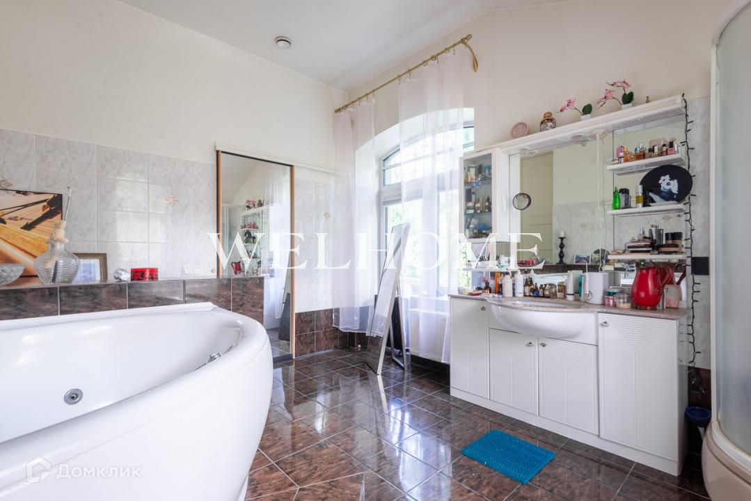 Гараж на 3 машины. 5 спален. Бассейн внутри дома. Камин. Сауна. Охраны нет. Маршрутная остановка напротив дома.