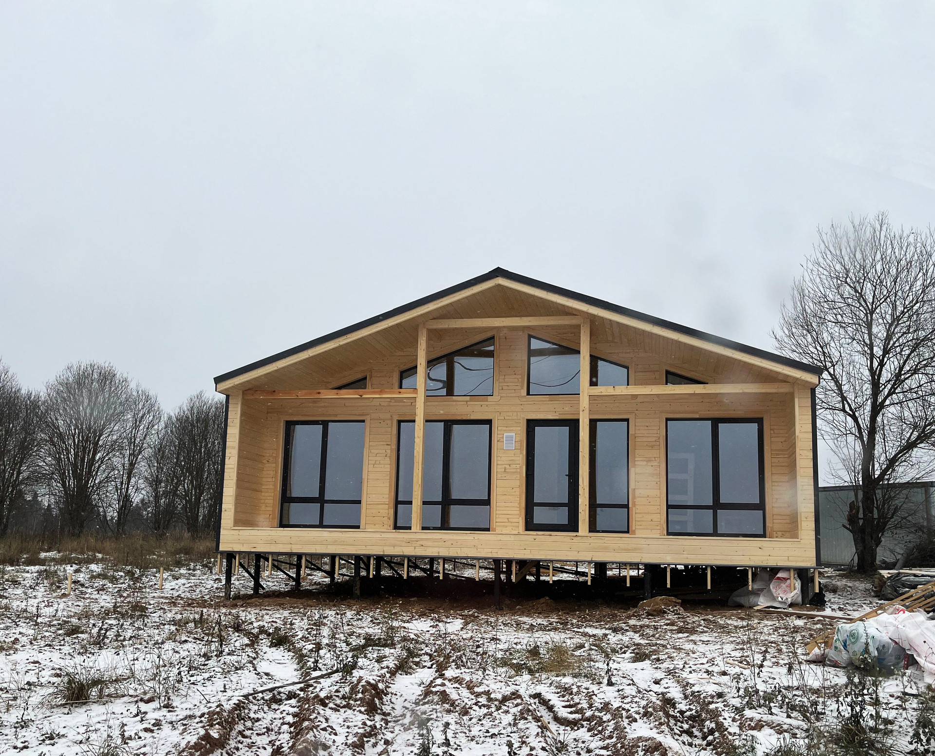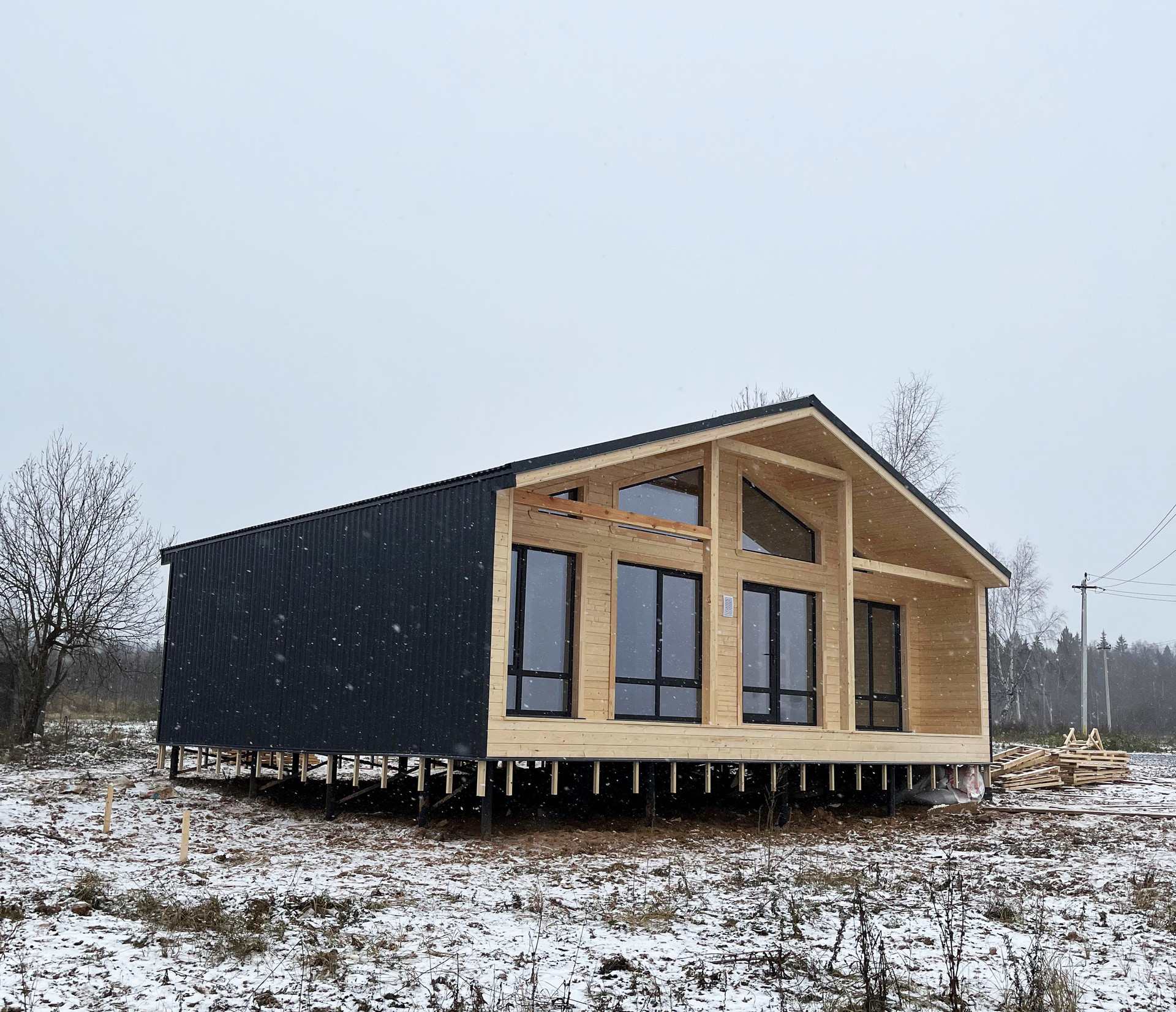 Современный дом в стиле барнхаус с сауной. Новостройка. Панорамный вид на хвойный лес. Качественные материалы. В поселке разводят газ. В данный момент получаем ТП на подключение электричества (столб в метре от участка).