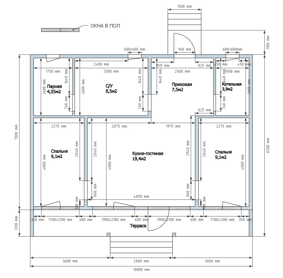 Общая площадь 90 м2