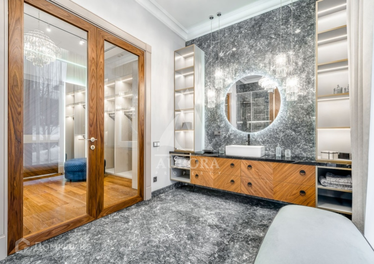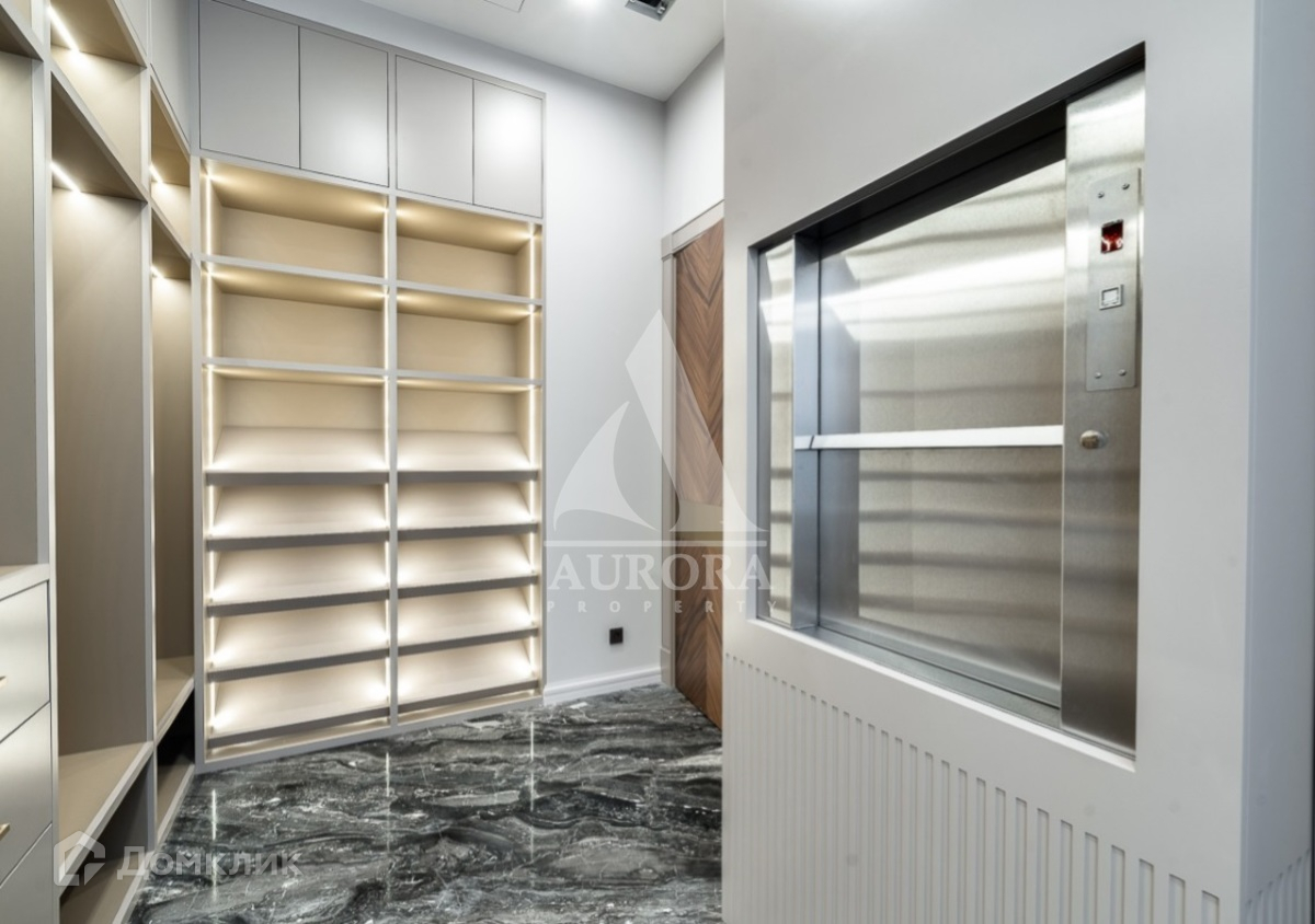 Лот №d166 Новый современный дом в КП "Горки-8" площадью 1400 метров квадратных + 157,4 кв. гараж на 3 машины с квартирой для персонала на прилесном участке 30 соток с пятью спальнями, кабинетом, бассейном, сауной, хамамом и пассажирским лифтом. На цокольном уровне техническая кухня с лифтом на первый этаж, постирочная, холодильная и морозильные камеры, бельевой лифт, комната отдыха с санузлом и другие технические помещения.