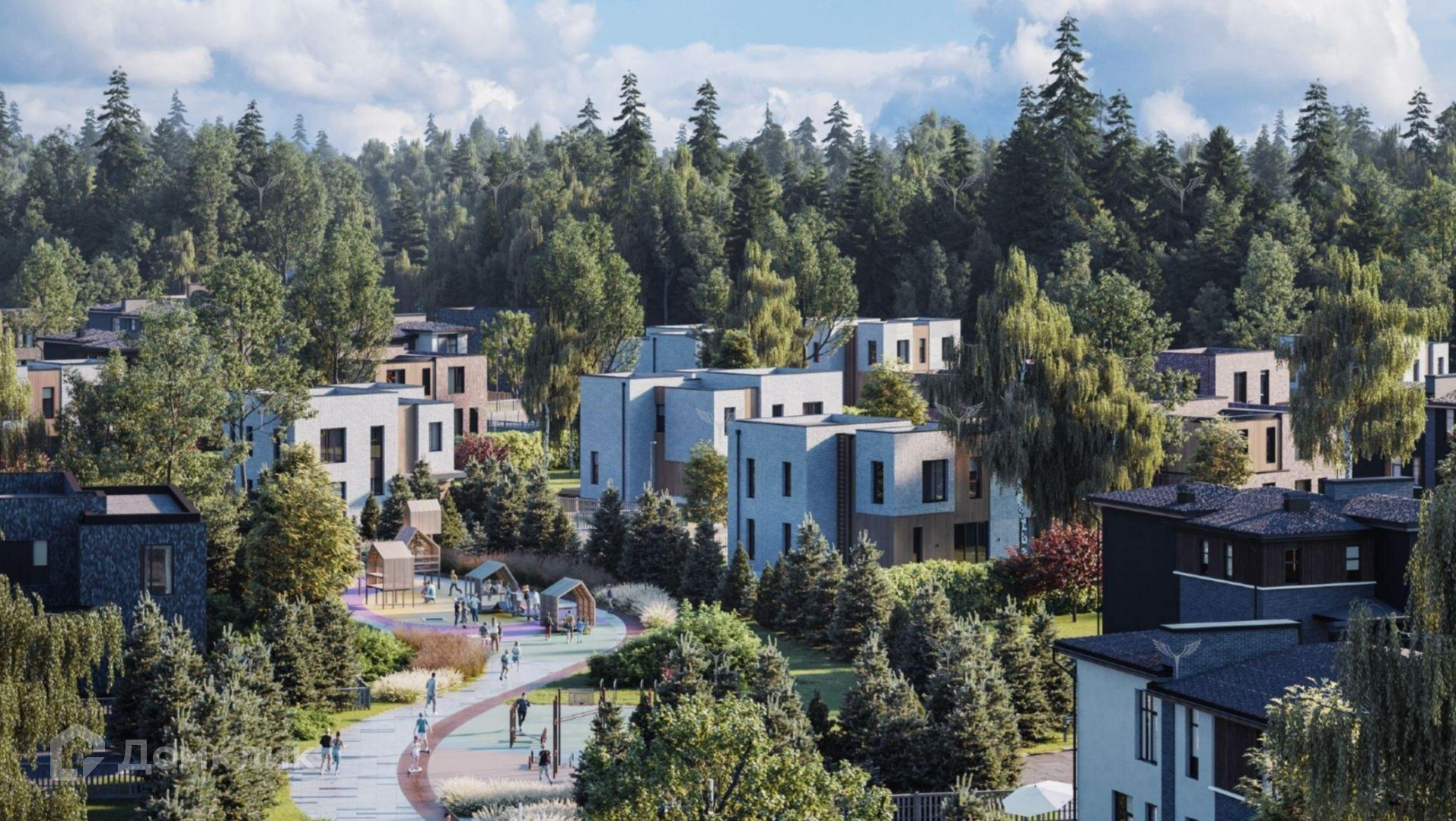 Архитектурный стиль поселка построен на сочетании лаконичной архитектоники и натуральных экологичных материалов. Все дома органично вписаны в ландшафт. Большие панорамные окна впускают максимум естественного света, а природа за окном становится частью интерьера.