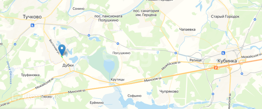 -рядом поселок Дубки. 20км до ЦКАД. 40 км до МКАД. 4 км до ЖД станции Тучково. 2км от Можайского шоссе.5.5 км  от Минское шоссе.