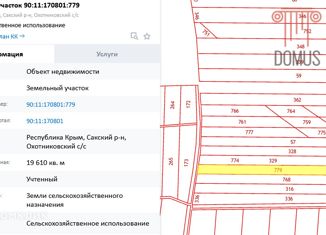 Объект №2253. Продается земельный участок (земли Охотниковского сельского поселения) рядом со строящейся трассой Симферополь-Евпатория. Категория земель: Земли сельскохозяйственного назначения Разрешенное использование: Сельскохозяйственное использование Собственник один |