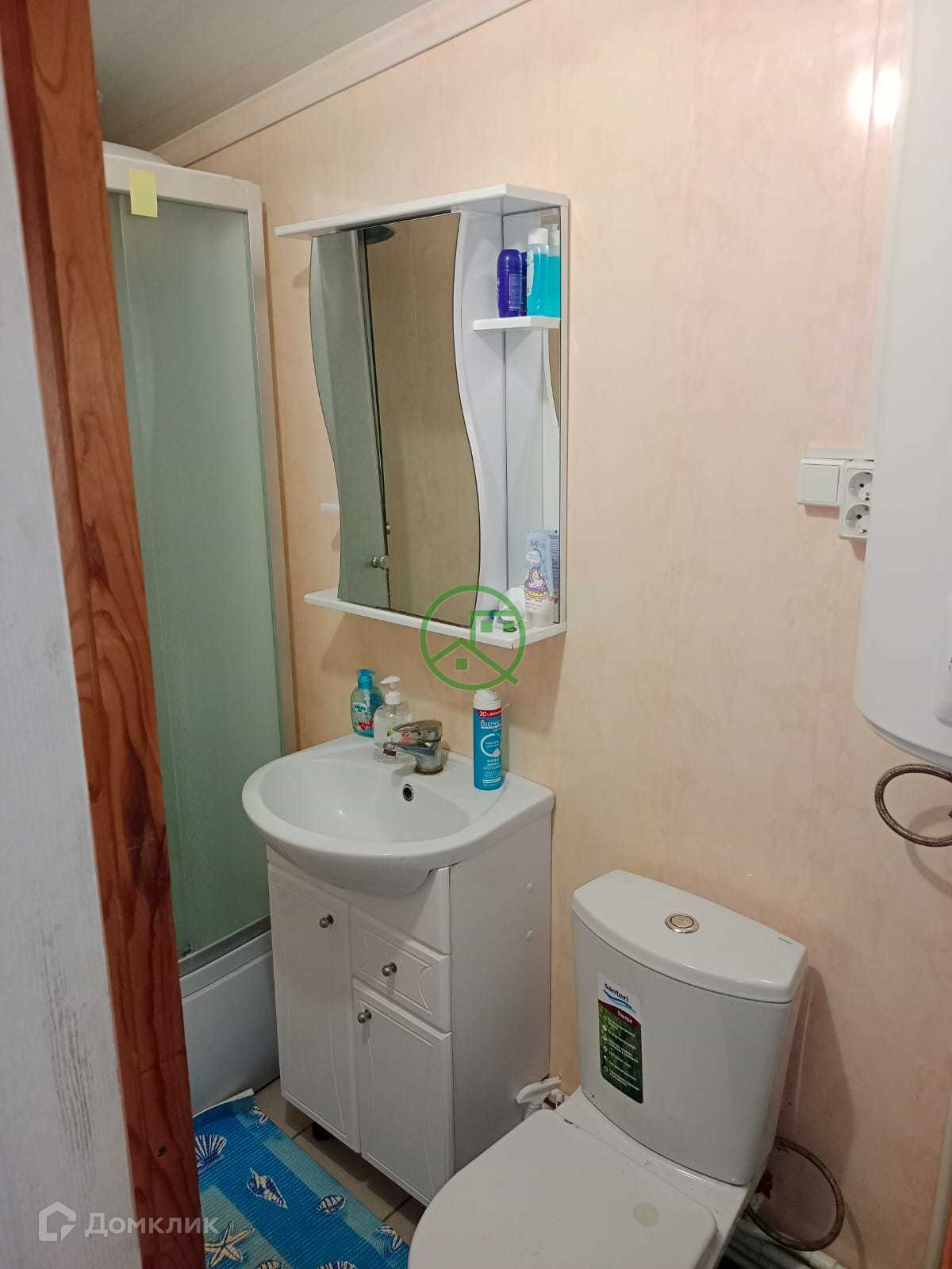 Санузел в доме, просторная кухня, 2 комнаты и коридор.