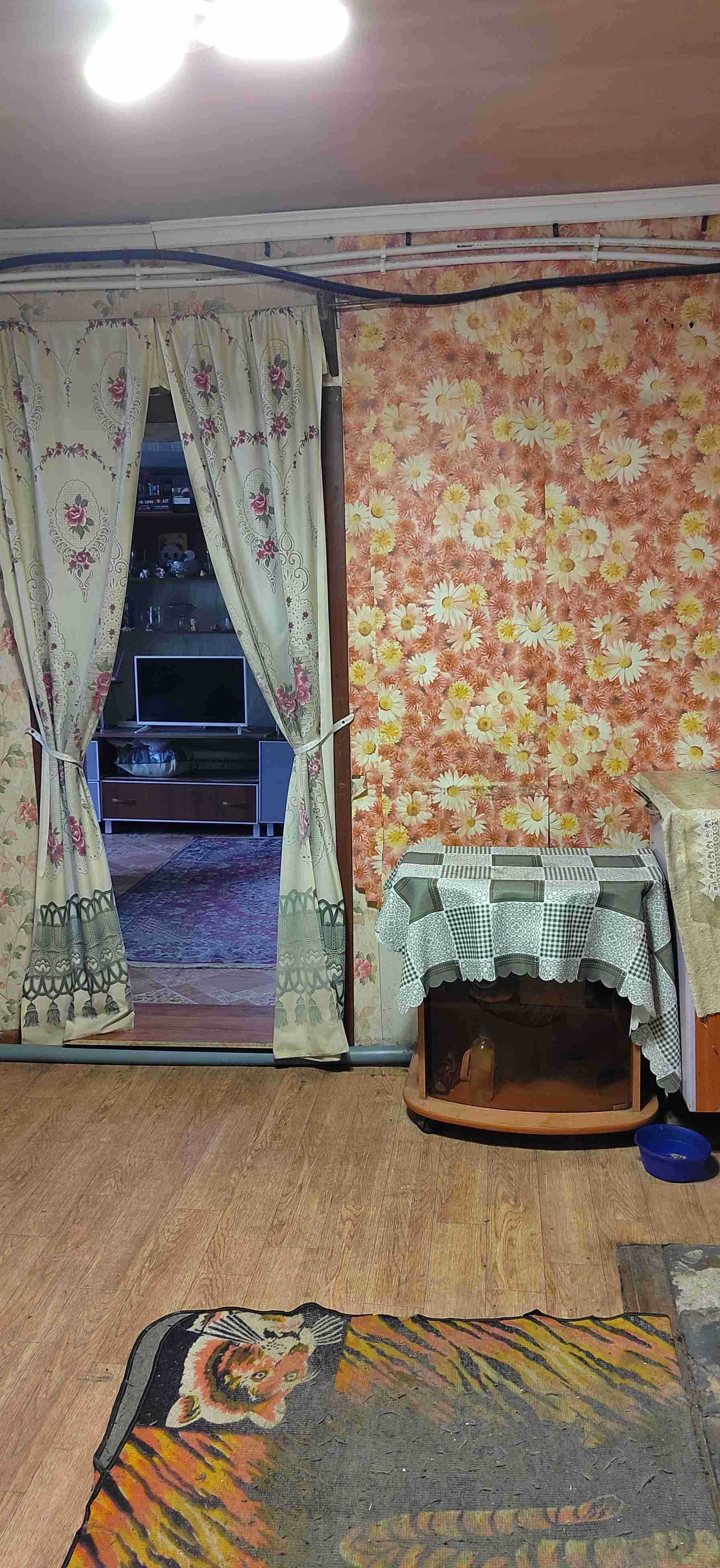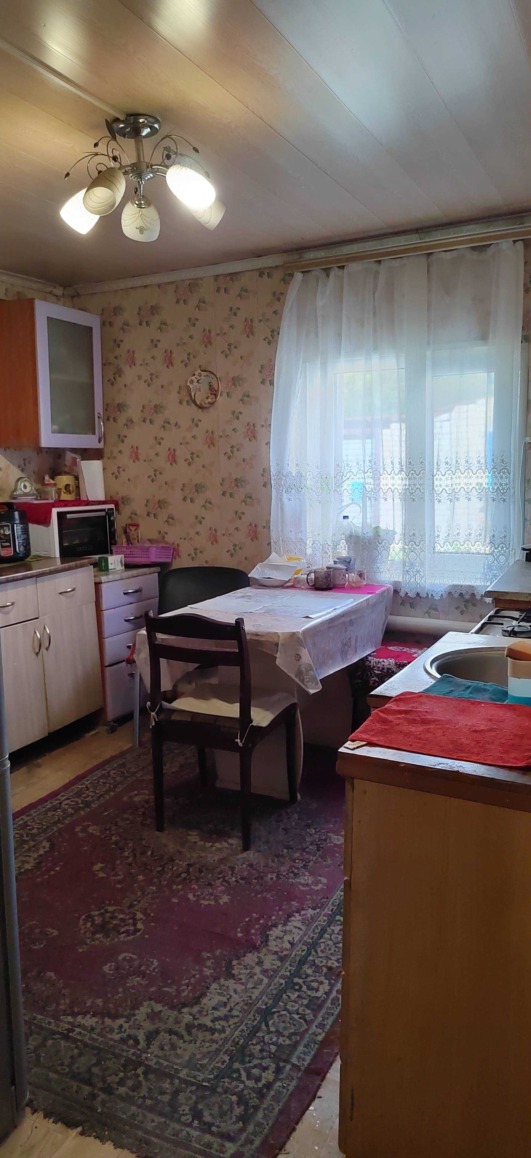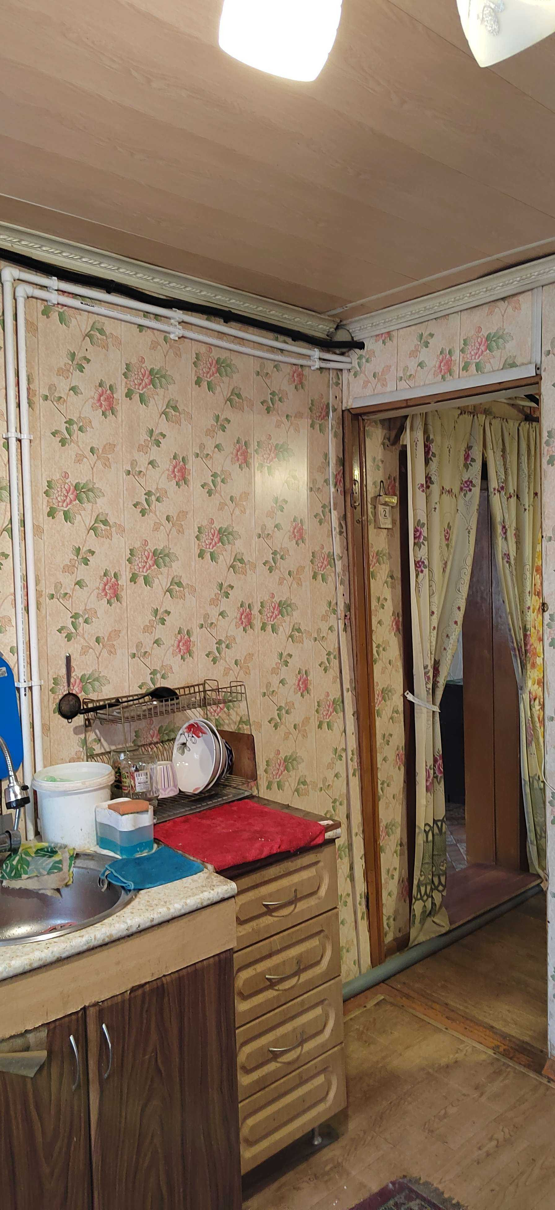 В доме просторная комната, кухня и ванная комната.